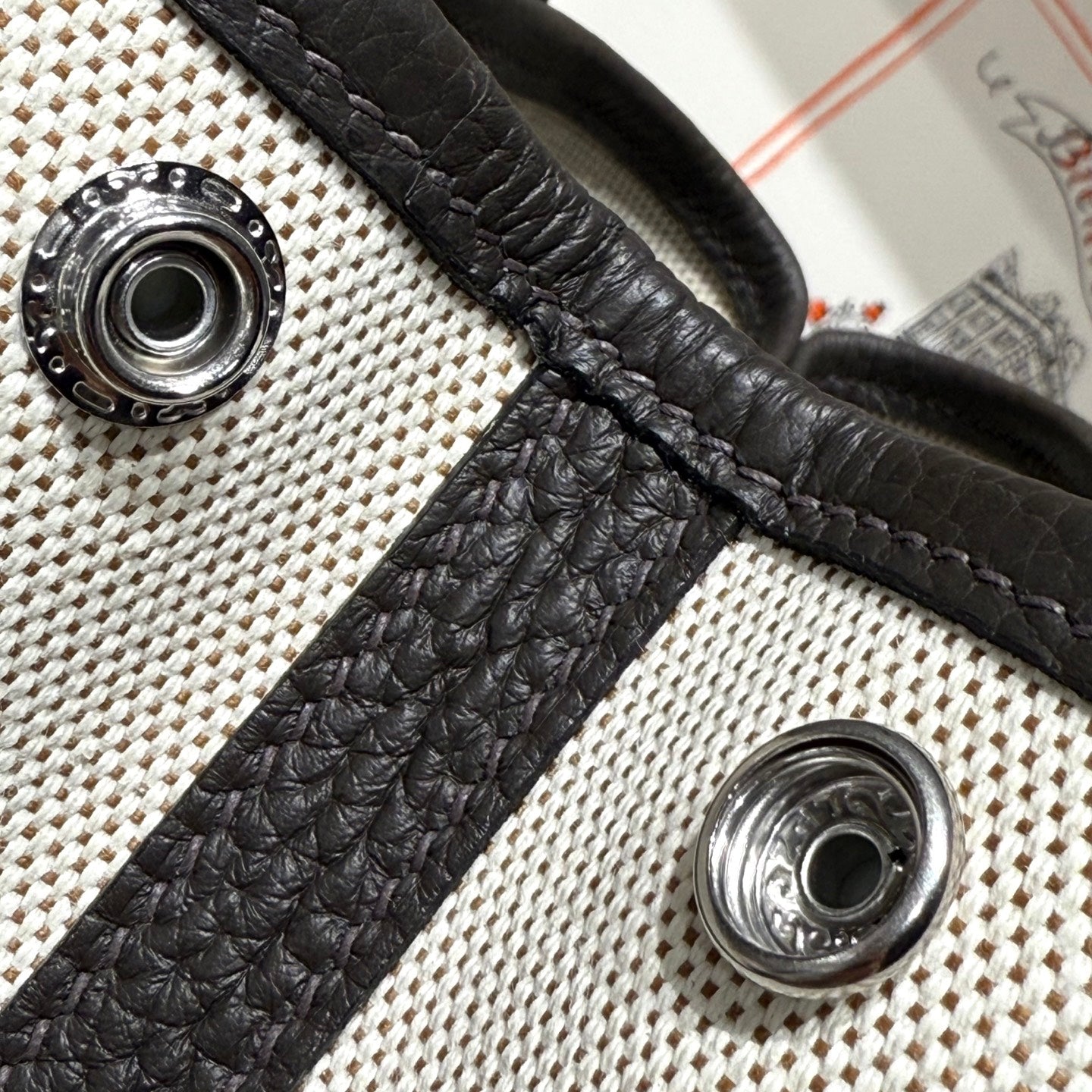 HM Garden Party 30cm Bag Etoupe Togo Orange Canvas