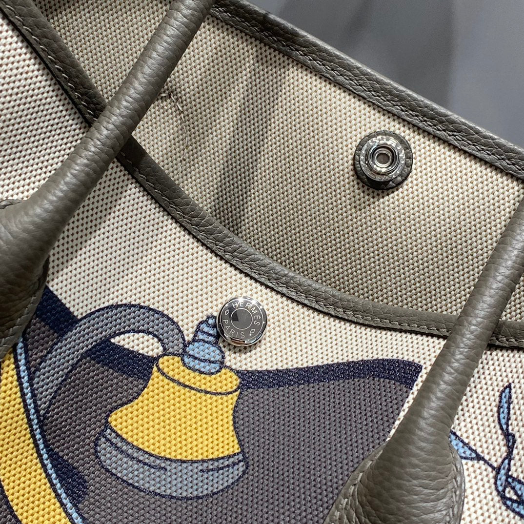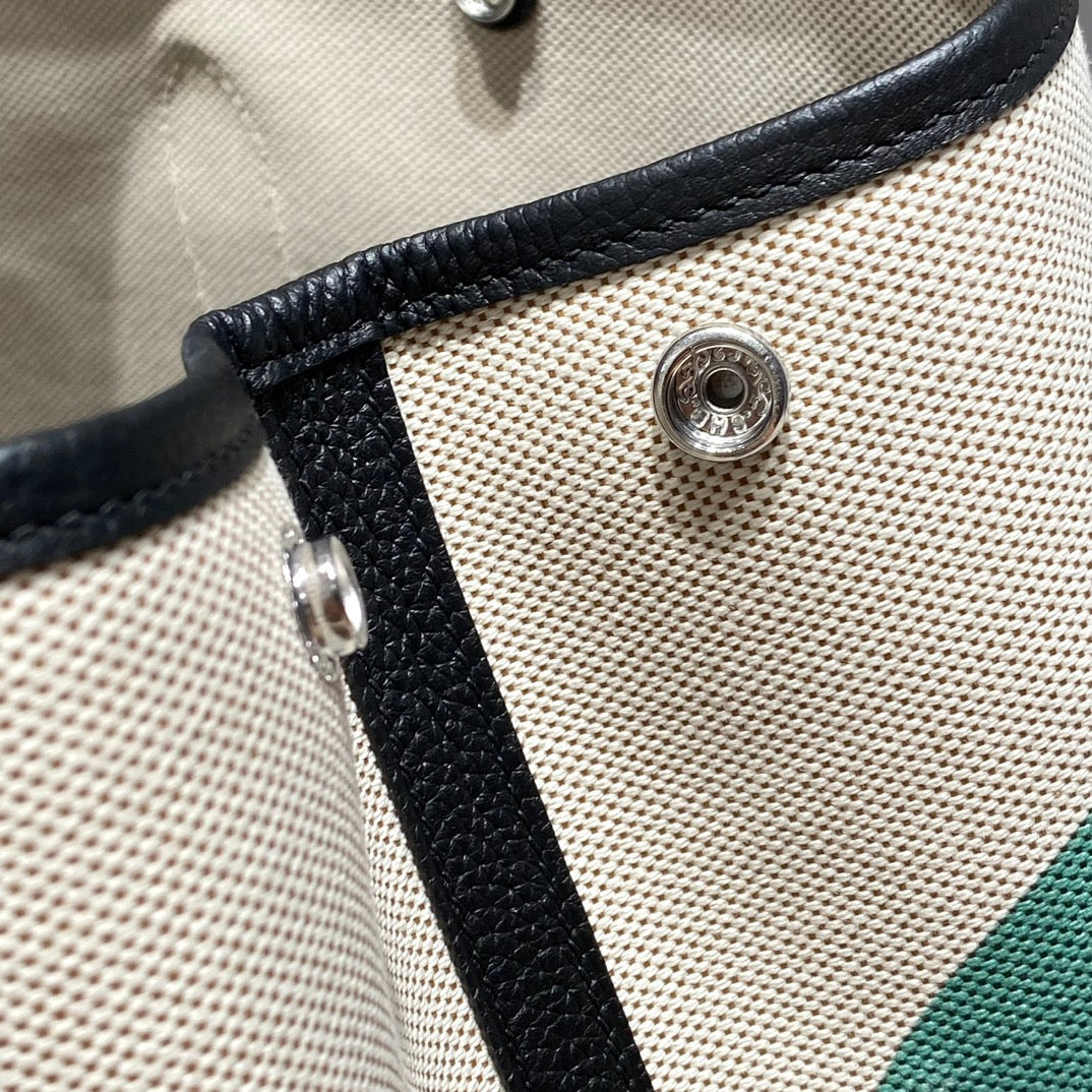 HM Garden Party 30cm Bag Vert Amande Togo Beige Canvas