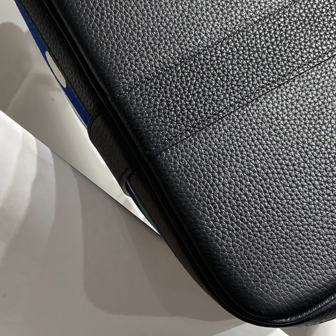 HM Garden Party 30cm Bag Black Togo Dark Grey Canvas