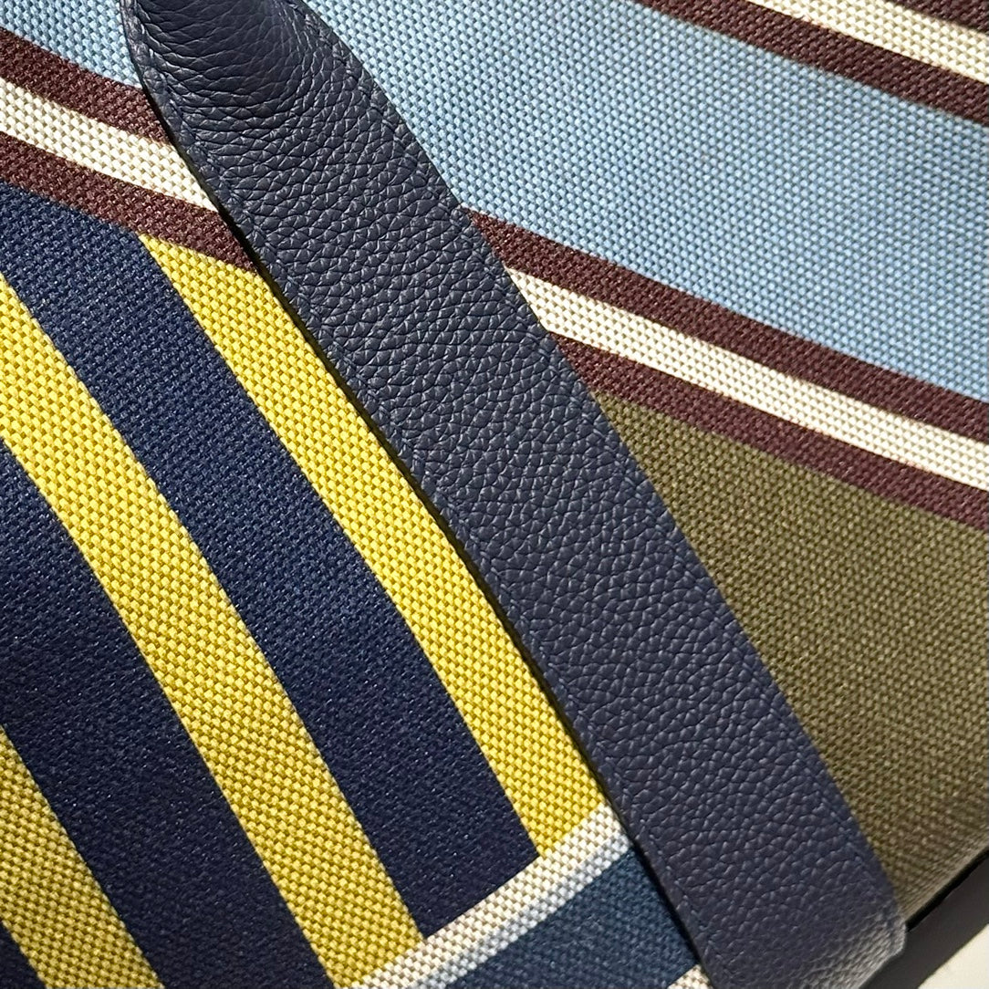 HM Garden Party 36 Beige mix Navy Blue Canvas and Negonda Calfskin 243391