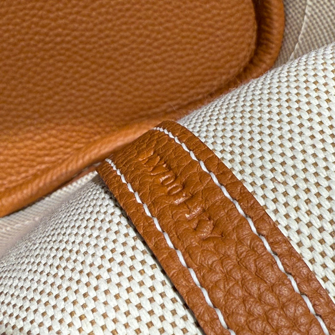 HM Garden Party 30cm Bag Gold Togo Dark Beige Canvas