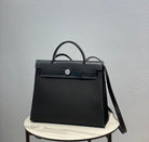 Herbag 31 Toile Black Canvas Black Cowhide Leather