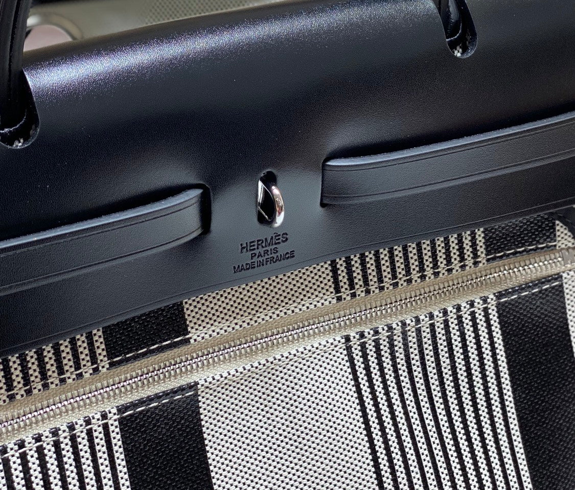 Herbag 31 Toile White Black Canvas Black Cowhide Leather