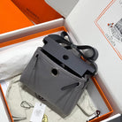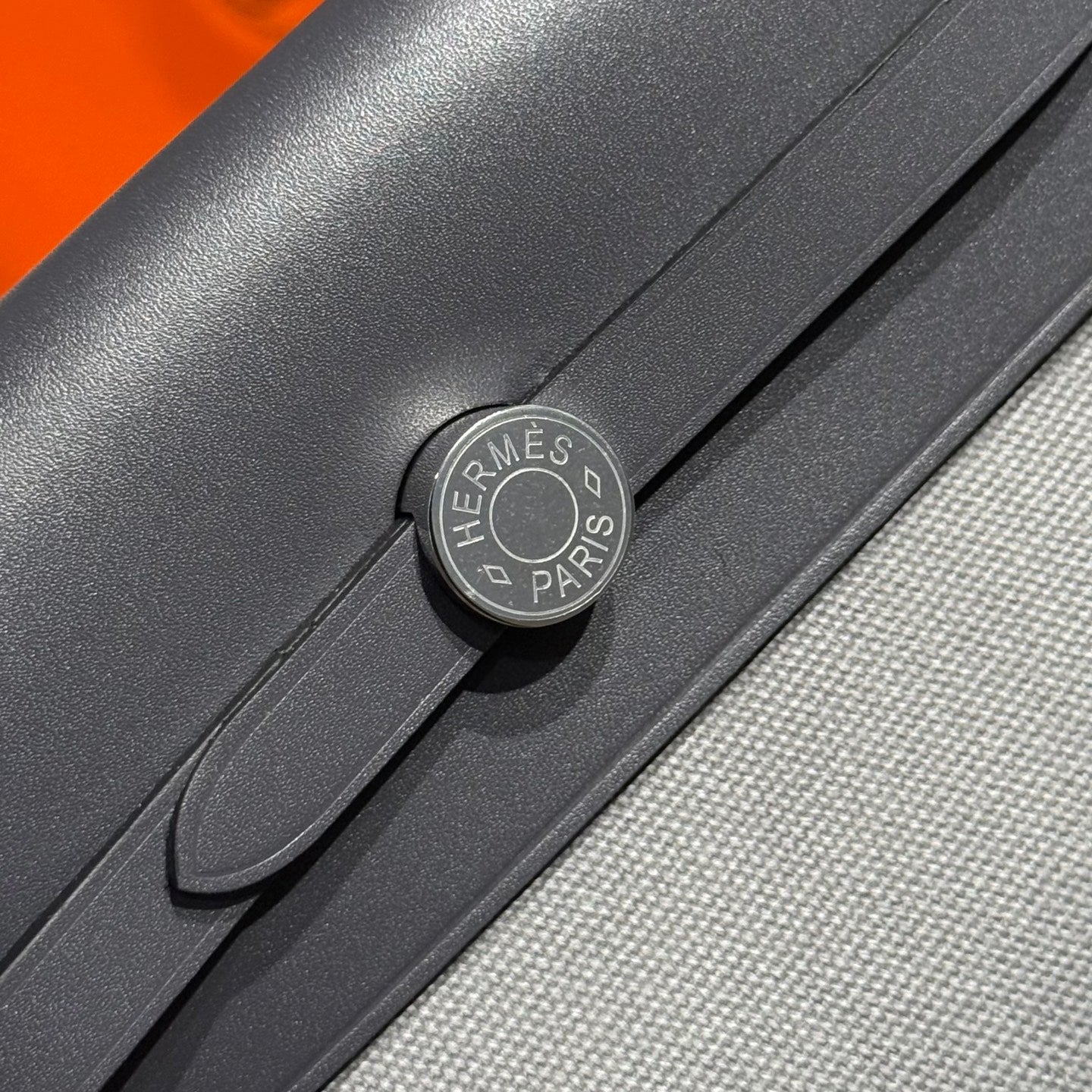 HM Mini Herbag Silver Buckle 20 Gray Canvas and Hunter Cowhide 243265