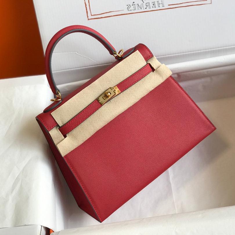 HM KELLY 32CM BAG IN BERRY TOGO GOLD HARDWARE