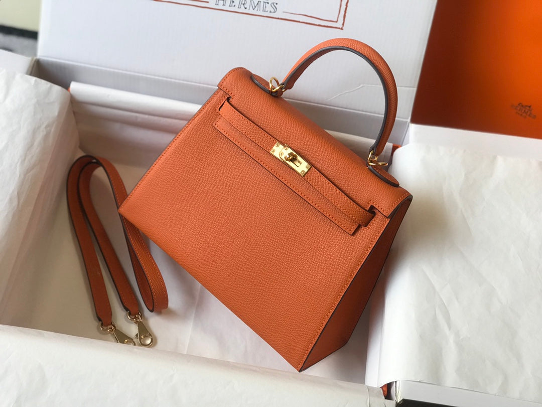 HM KELLY 32CM BAG IN ORANGE TOGO GOLD HARDWARE