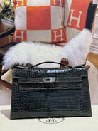 HM KELLY MINI 22 IN BLACK AMERICAN ALLIGATOR SILVER BUCKLE