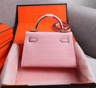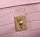 HM KELLY MINI 22 LIGHT PINK EMBOSSED CALFSKIN GOLD HARDWARE
