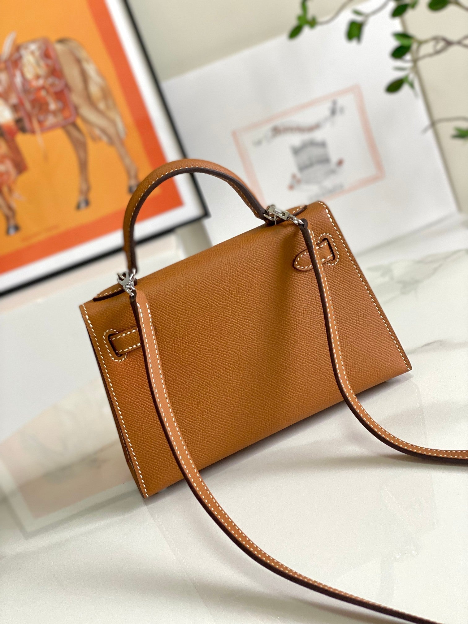 HM Mini Kelly 19cm Gold Epsom Silver Hardware