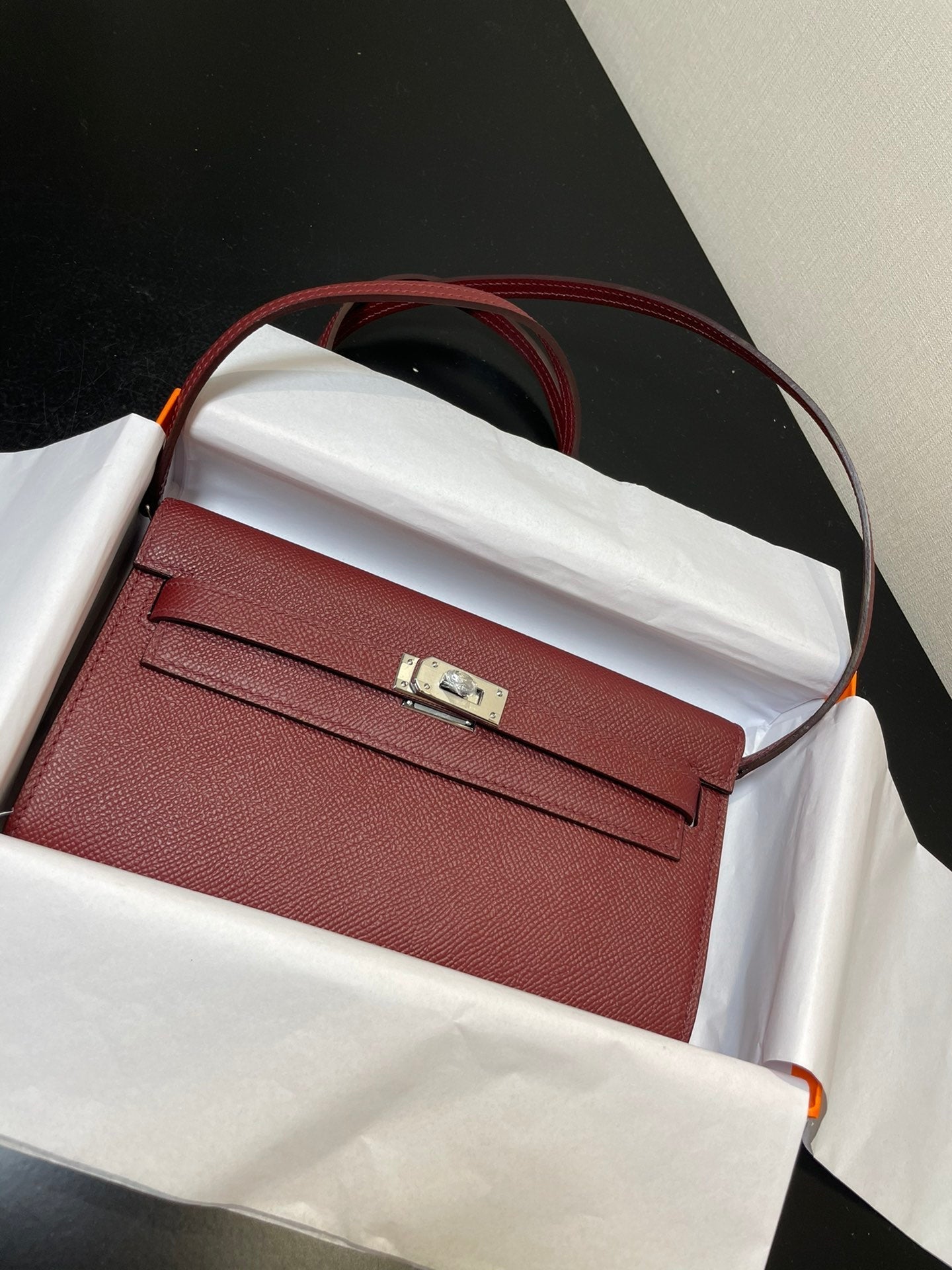 kelly to go wallet 20.5 rough h epsom silver hardware