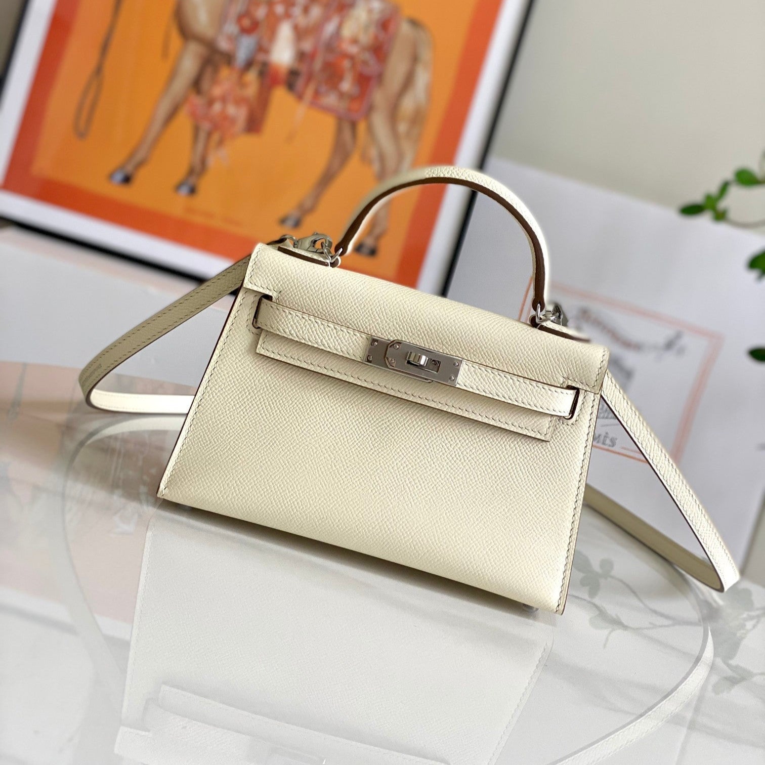 HM Mini Kelly 19cm Cream Epsom Silver Hardware