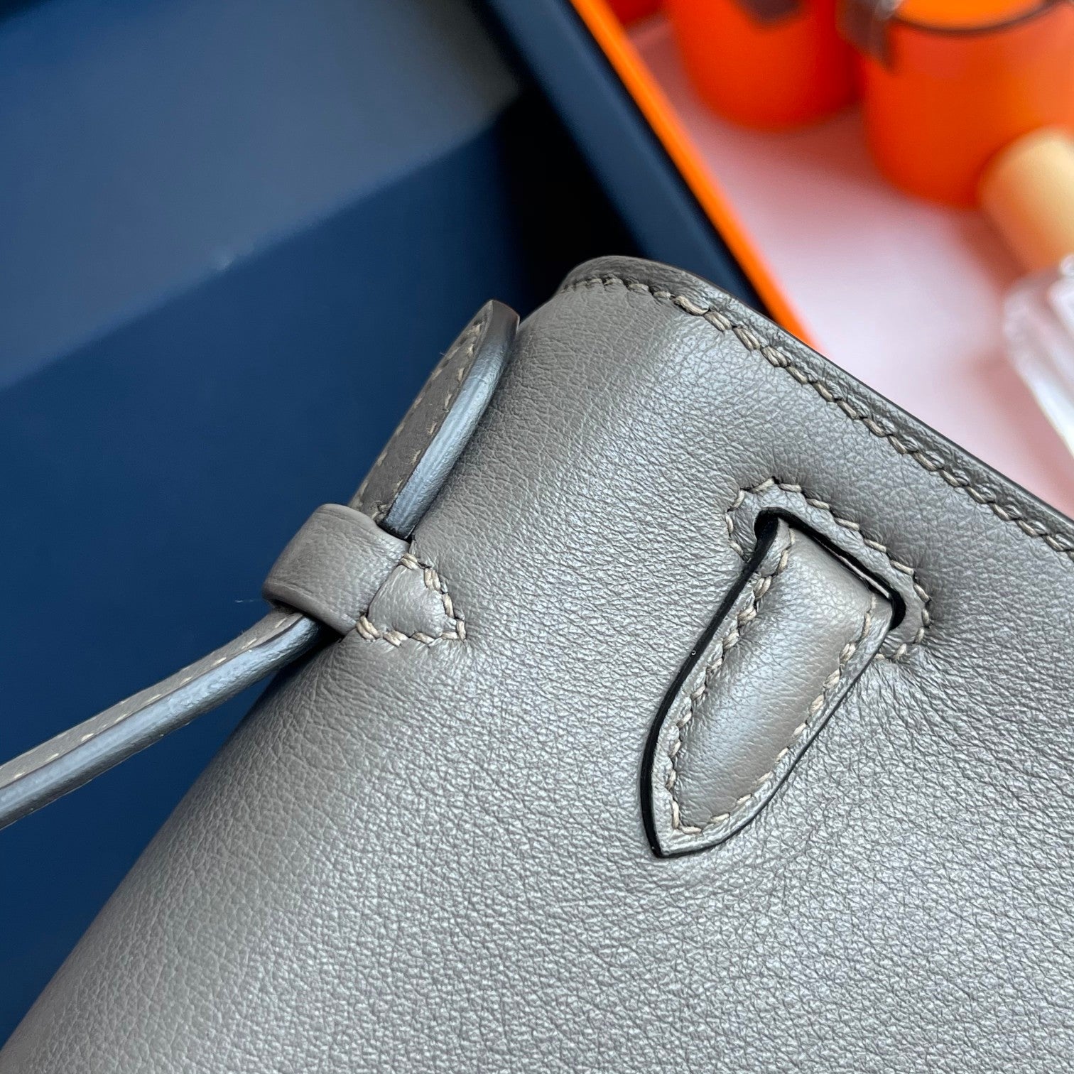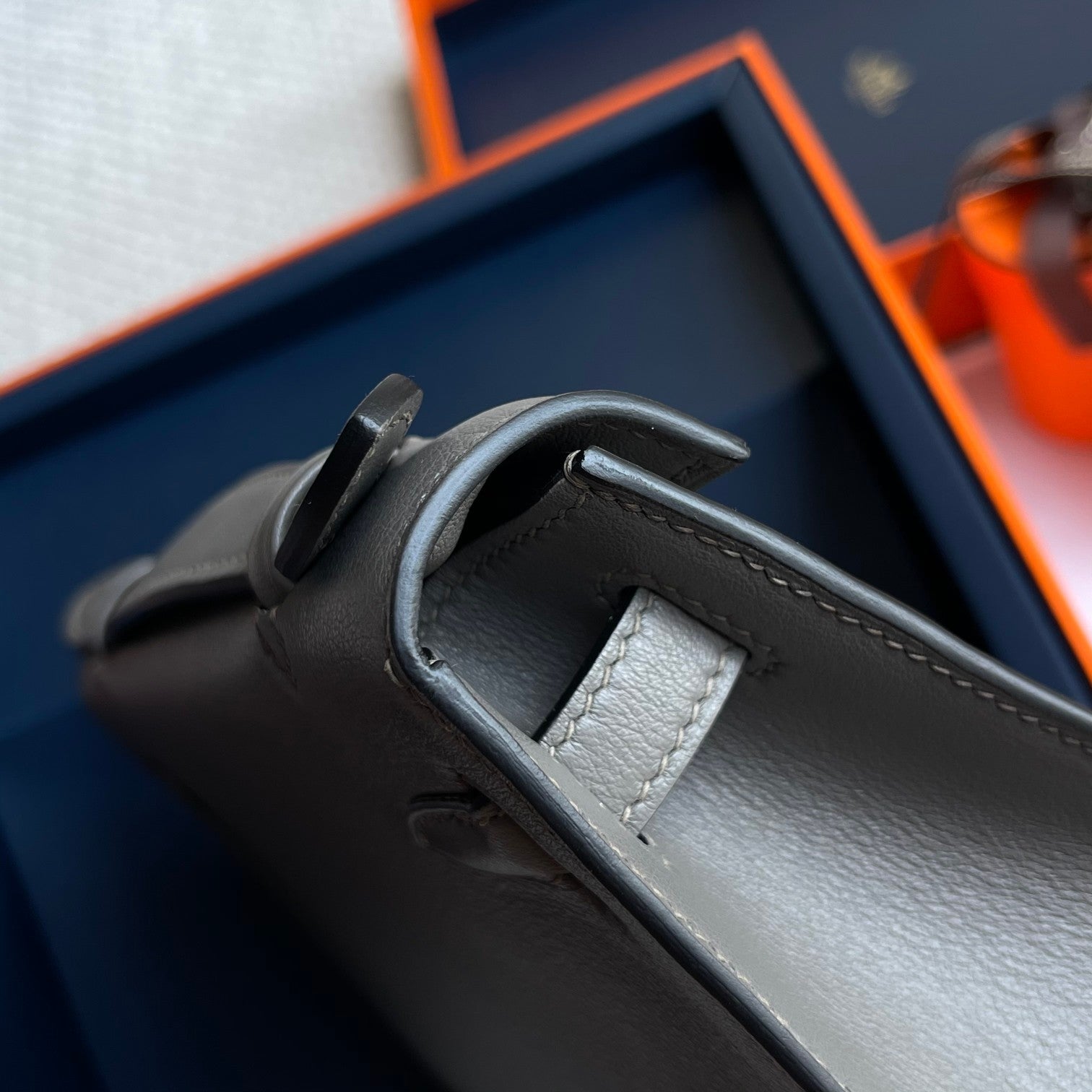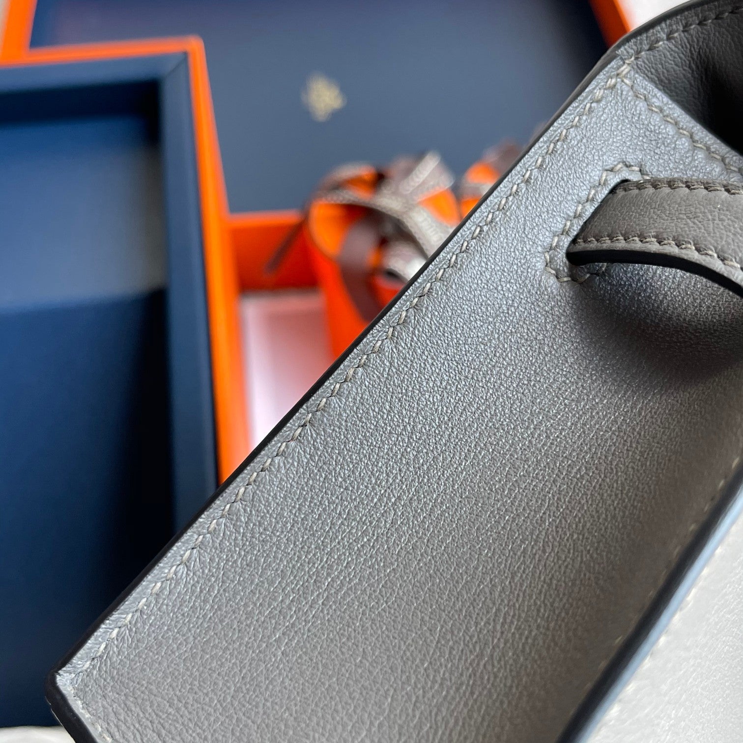 HM Kelly Pochette 22cm Gris Elephant Swift Gold Hardware