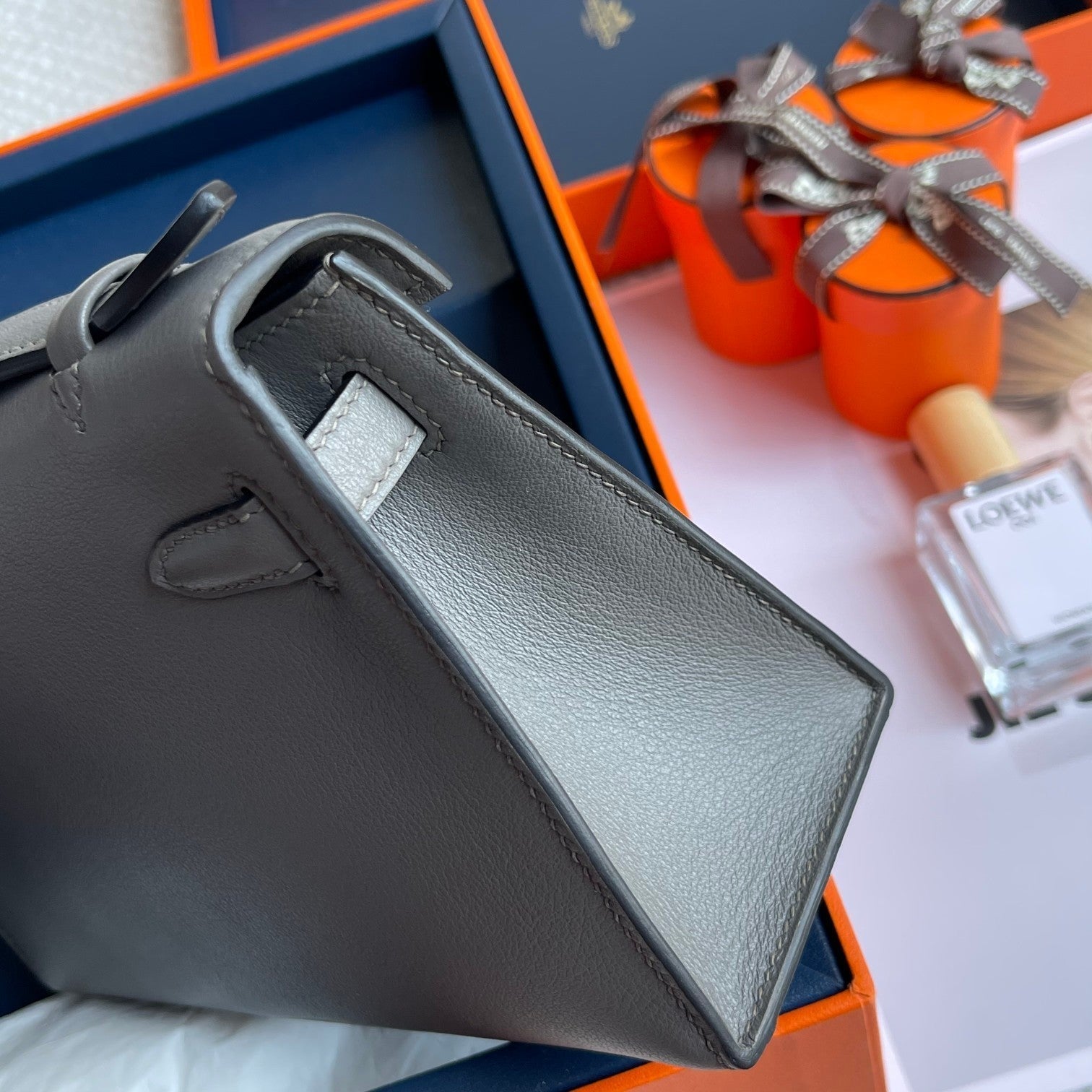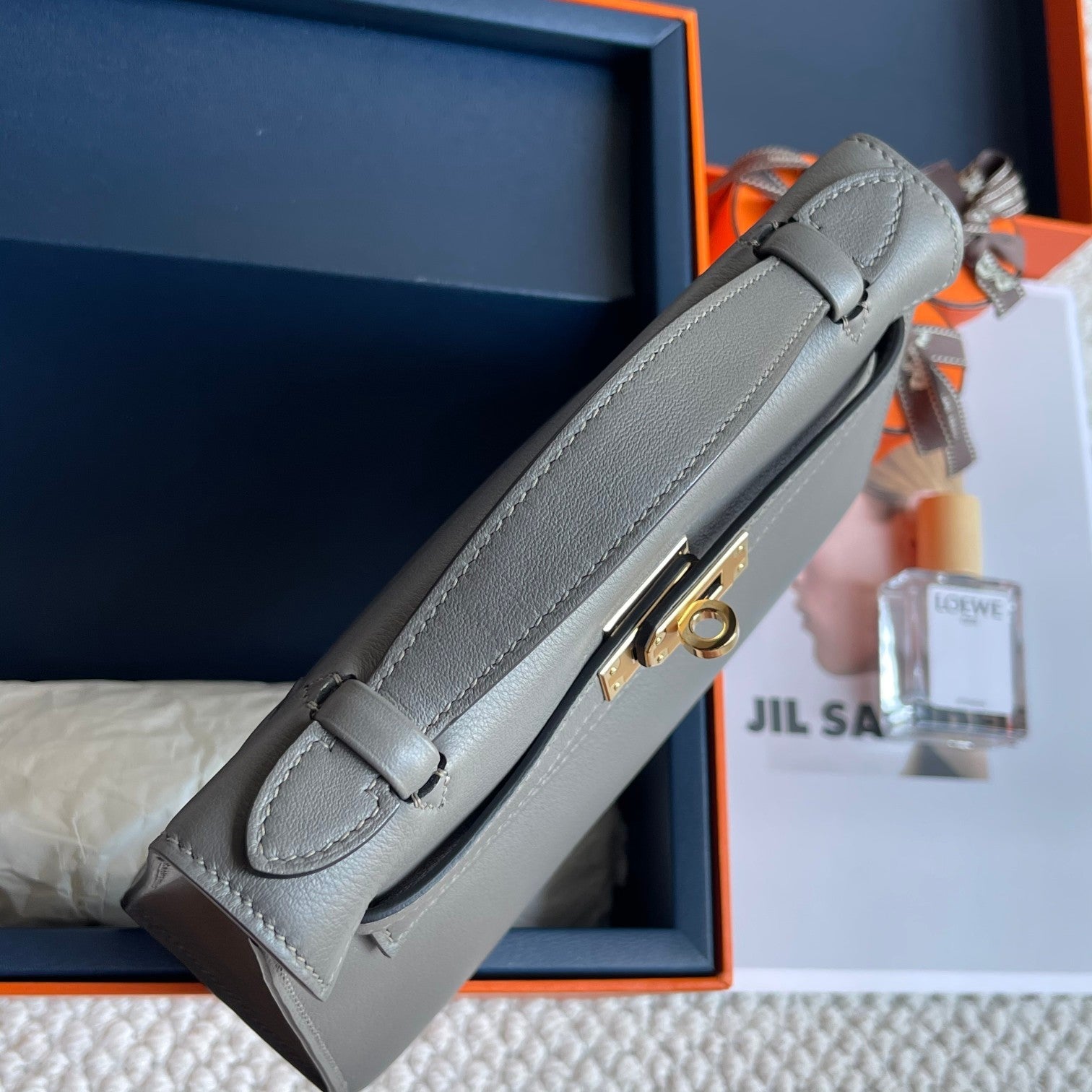 HM Kelly Pochette 22cm Smoke Gray Swift Gold Hardware