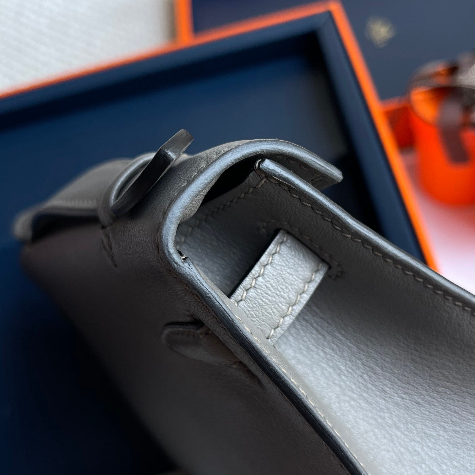 HM Kelly Pochette 22cm Gris Elephant Swift Silver Hardware