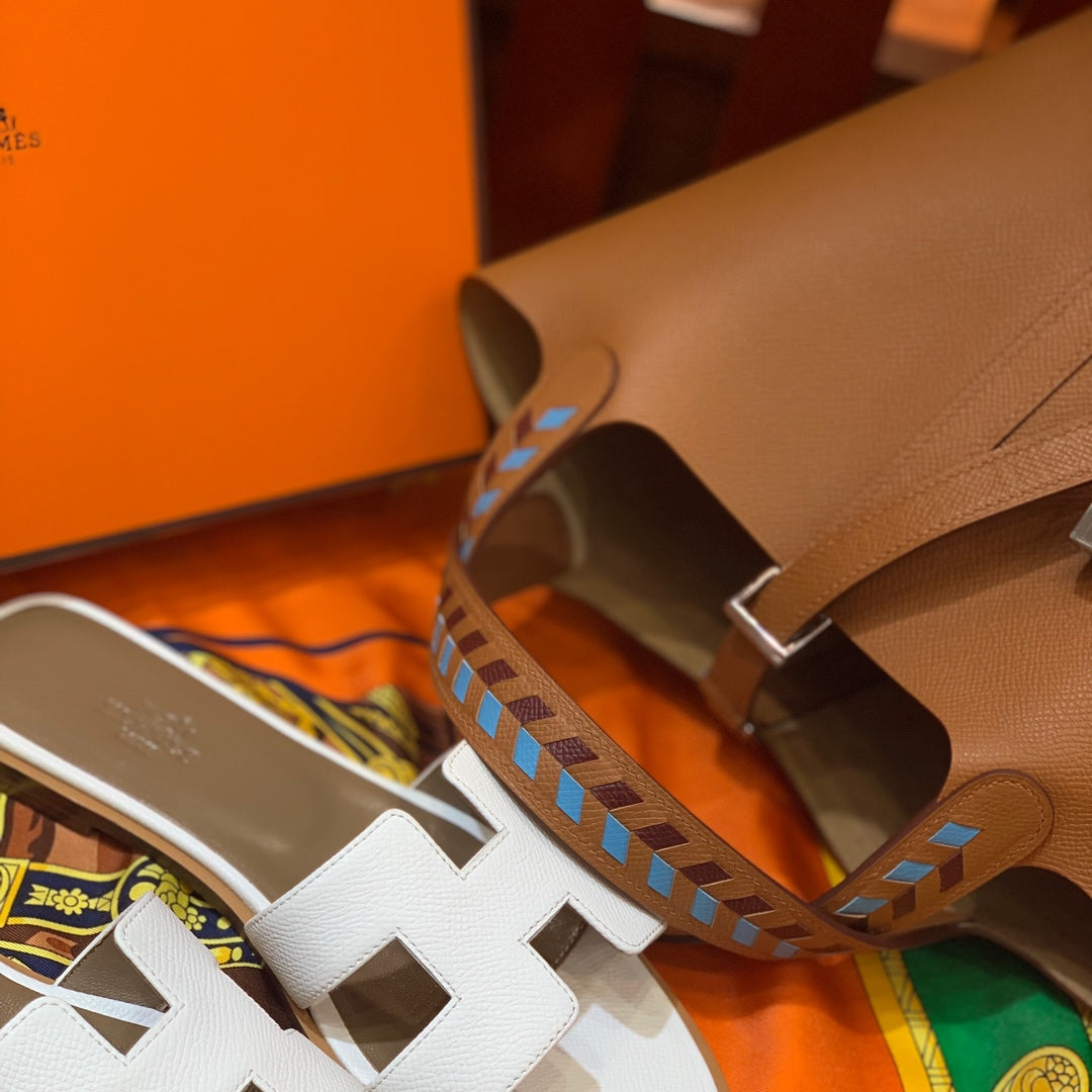 HM PICOTIN LOCK 22 WHITE AND BROWN TOGO LEATHER