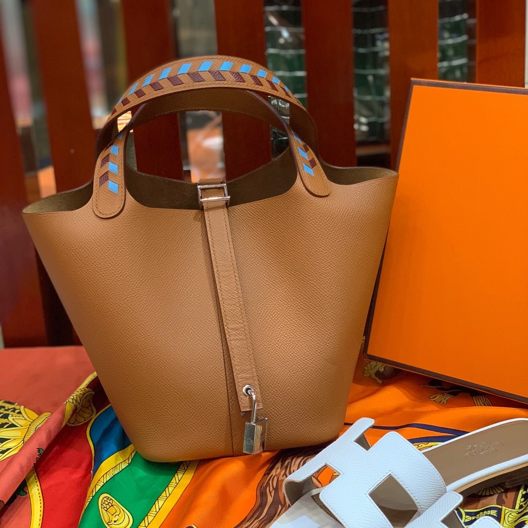 HM PICOTIN LOCK 22 TAUPE EPSOM WITH BRAID STRAP