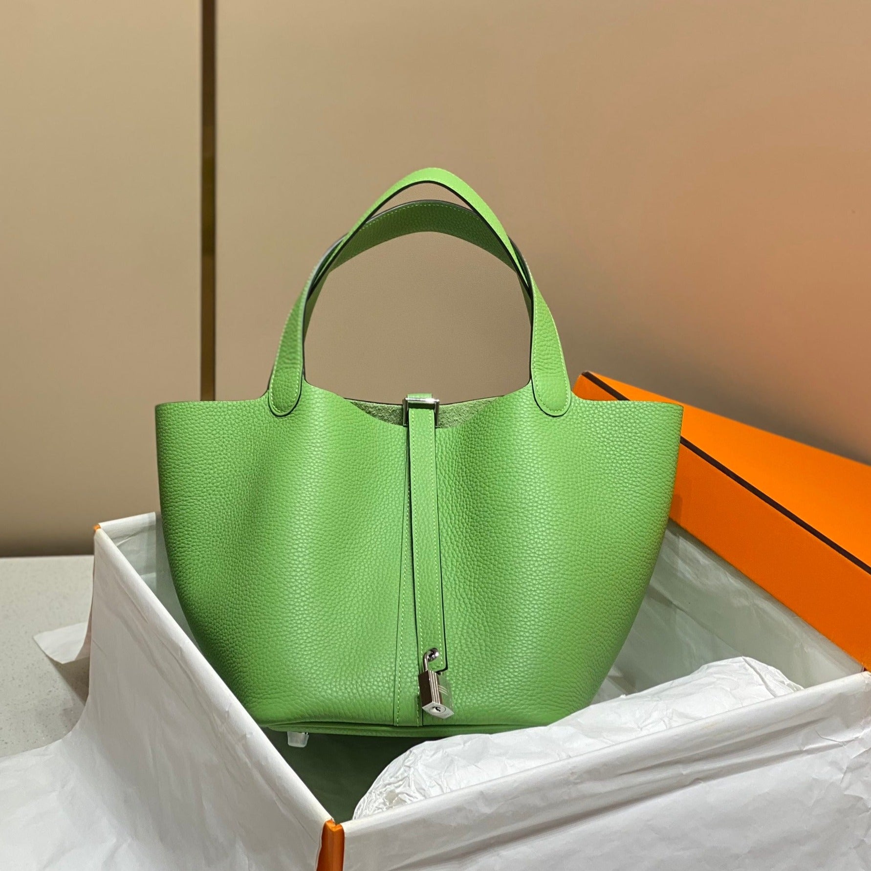 HM PICOTIN LOCK 22 WHITE AND CHARTREUSE TOGO LEATHER