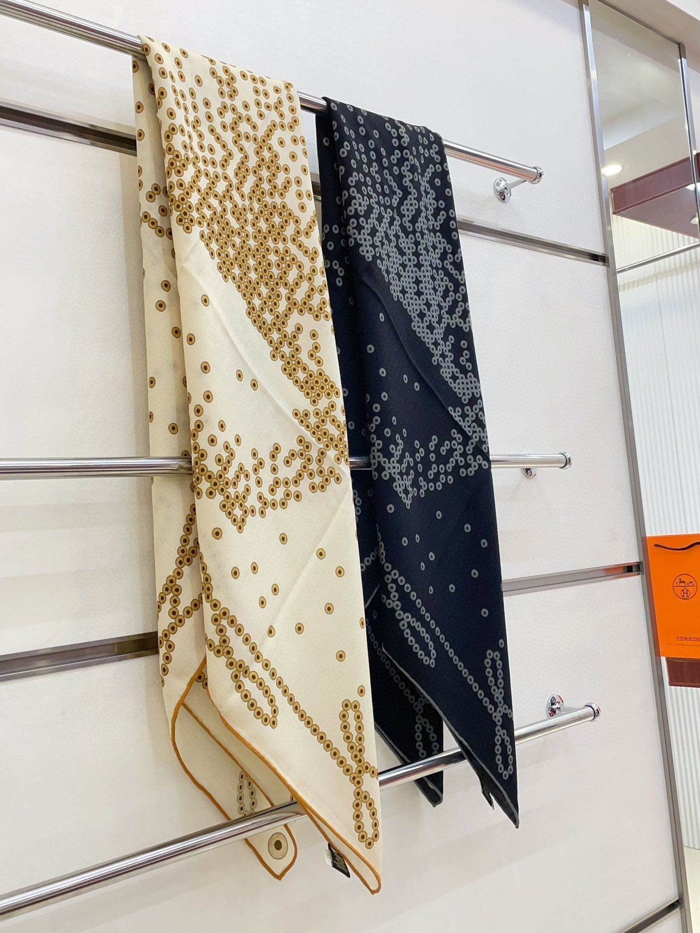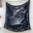 Cheval De Legende Scarf 140 CM Charcoal Blue Pattern Cashmere And Silk