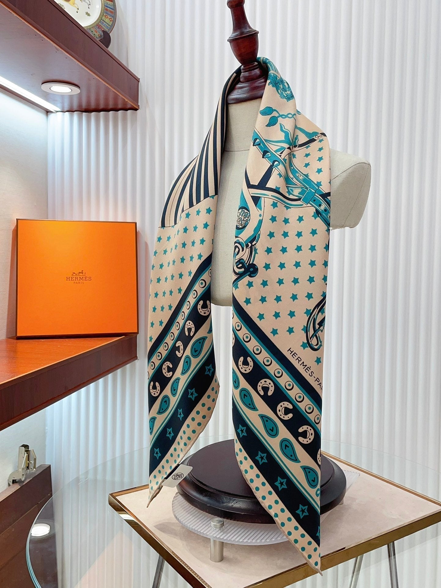 Cheval Punk Bandana Scarf 90 CM In Beige Mix Black Deep Green Silk Twill 309211