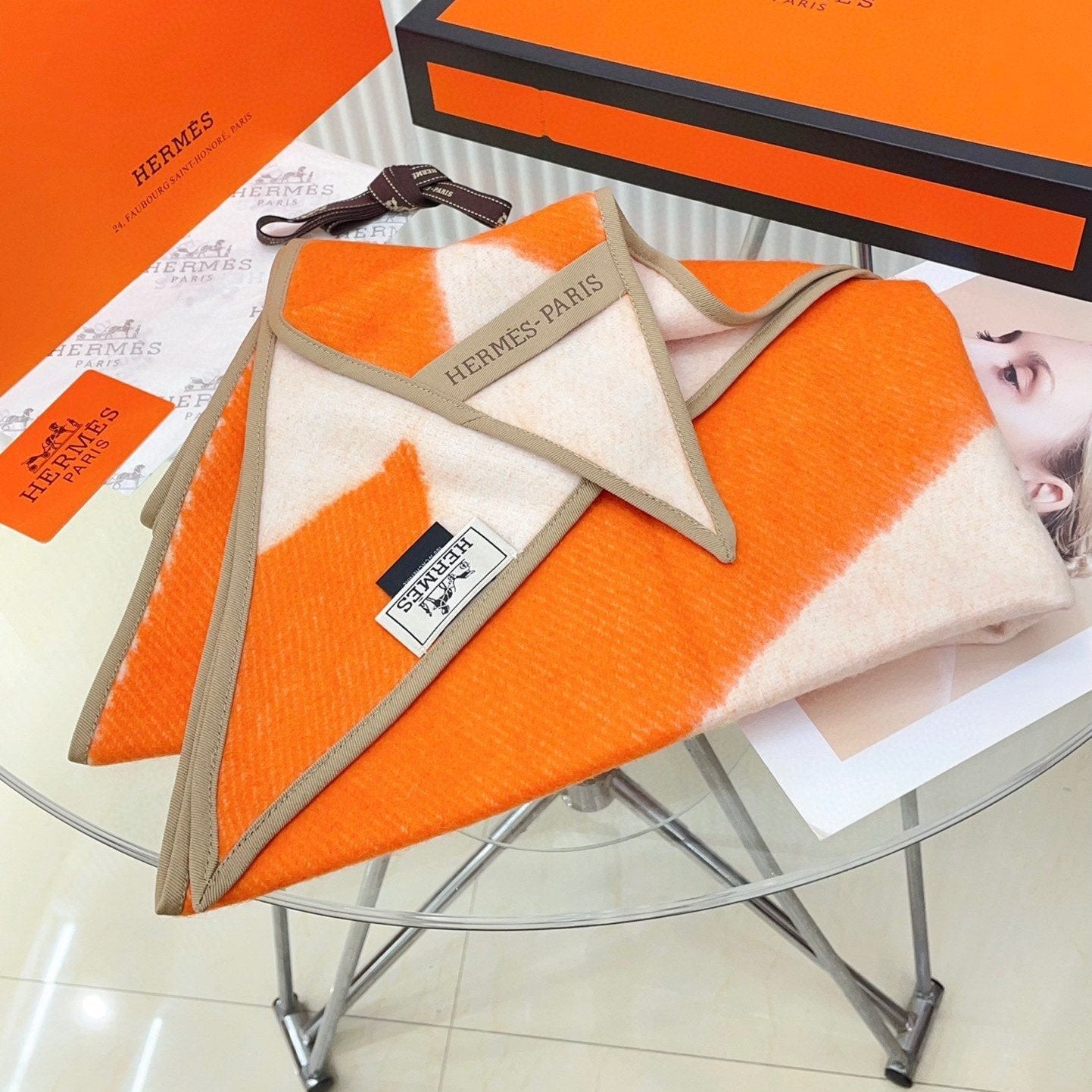 Diamond Shaped Scarf 186 CM In Orange Mix White Cashmere 373671