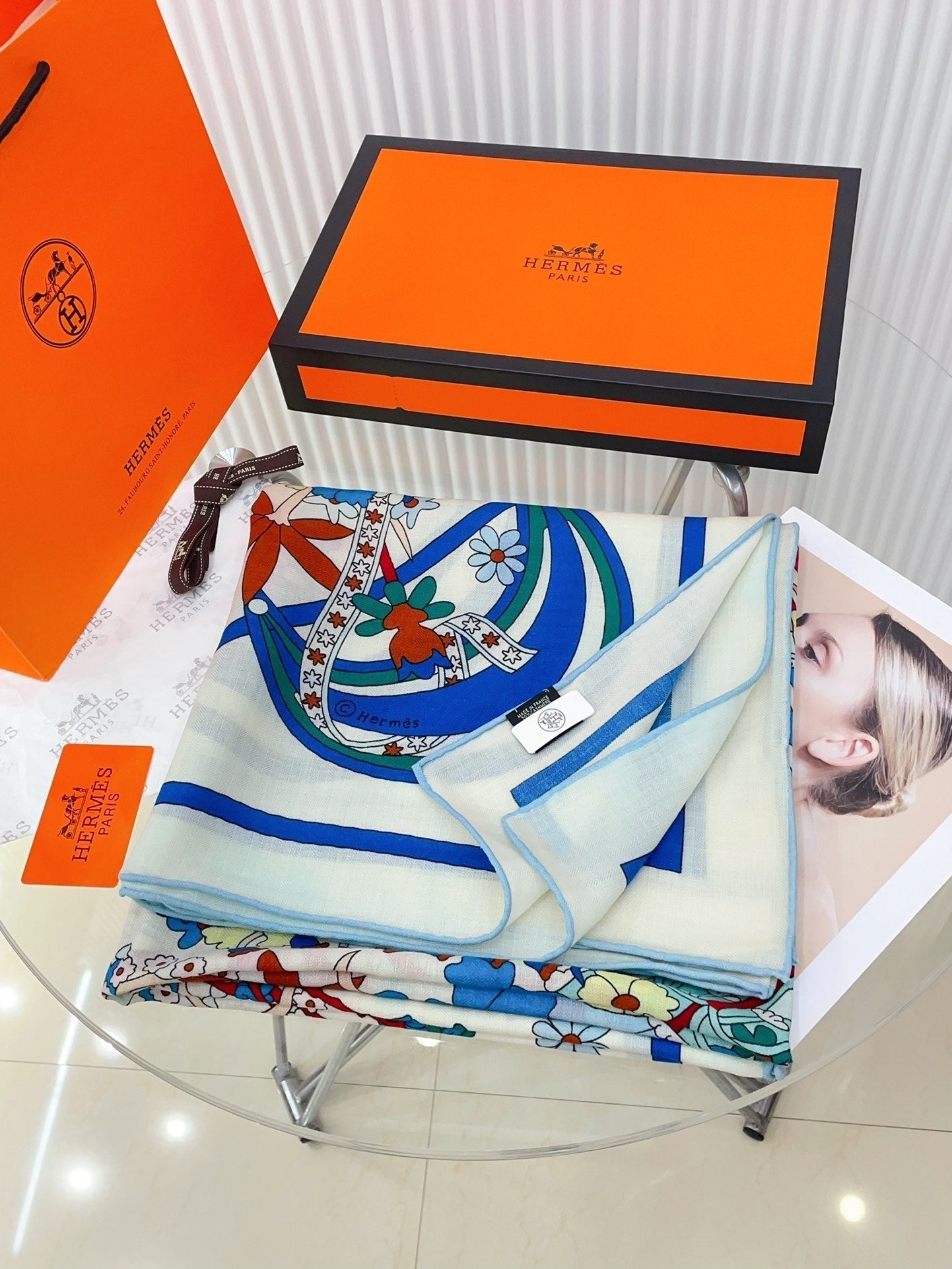 La Danse Du Printemps Scarf 140 In Light Blue Colorful Cashmere And Silk 344364
