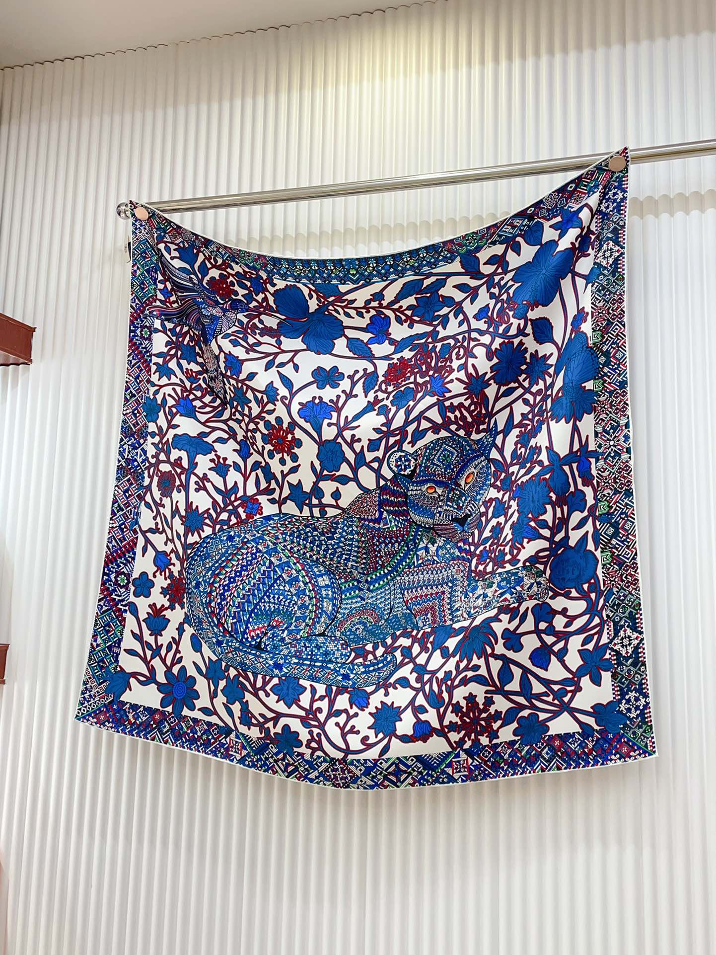 Le Jaguar Et Le Colibri Shawl 90 CM In Blue Colorful Silk Twill 274207