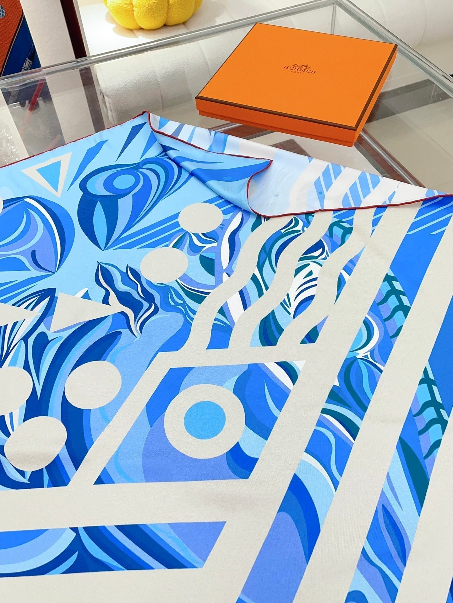 Le Reve De Julia Scarf 90 CM In Blue Colorful Silk Twill 198578