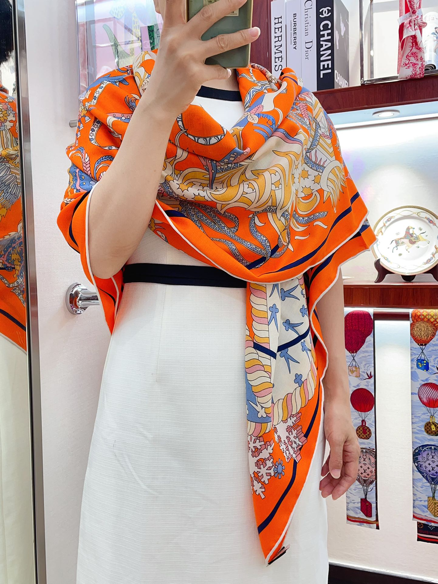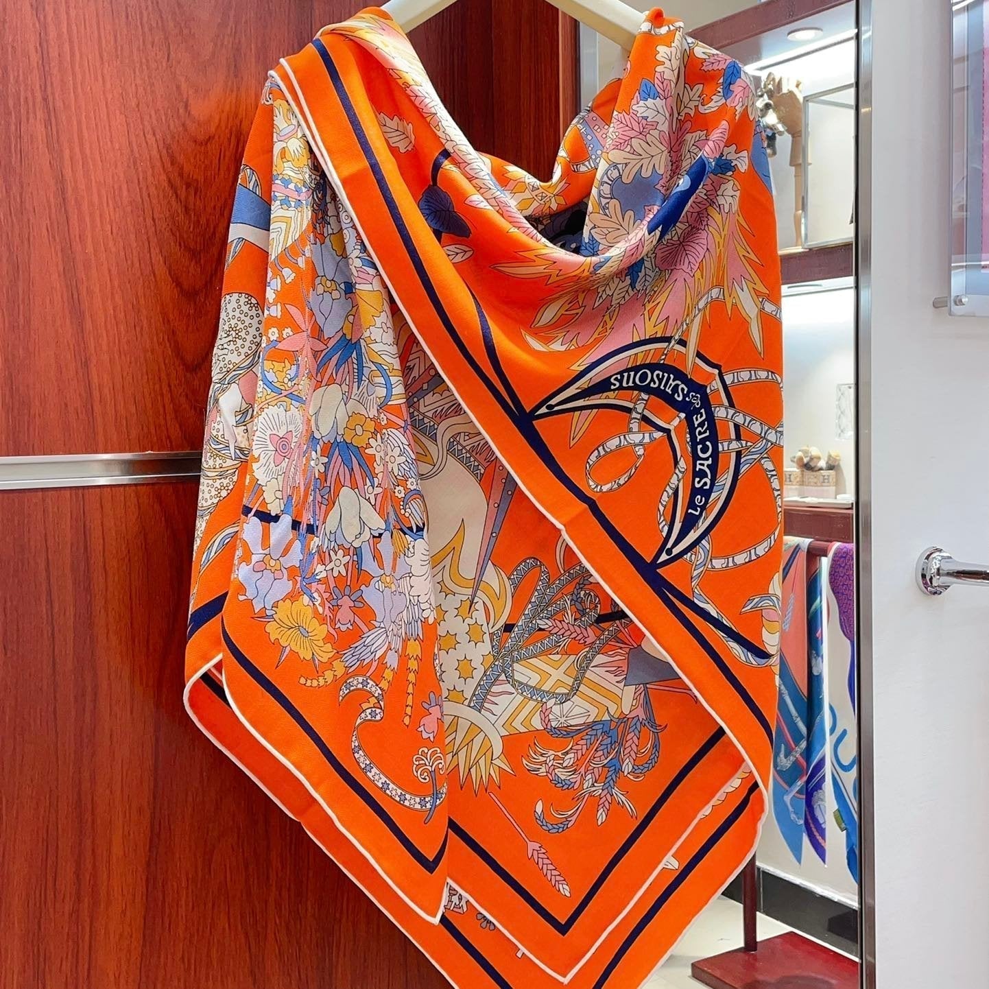 Le Sacre Des Saisons Scarf 140 CM In Colorful Cashmere And Silk 300431