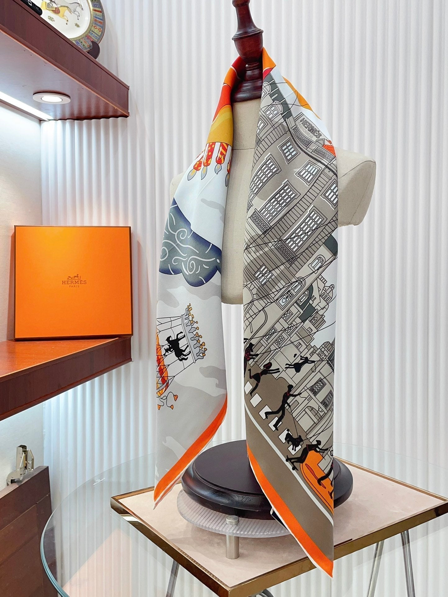 Parade Scarf 90 CM In White Grey Colorful Silk Twill 310306