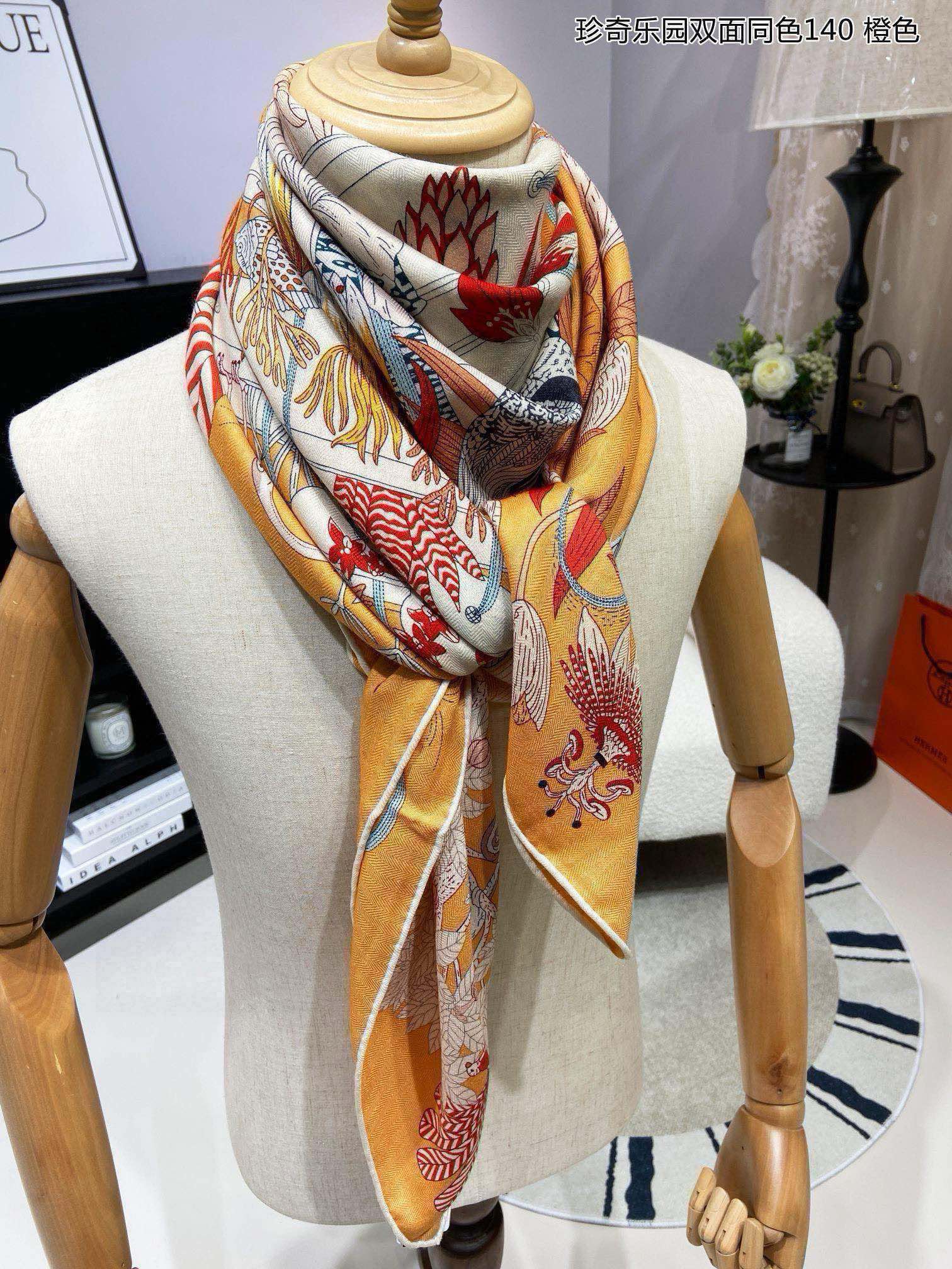 Precious Paradise Scarf 140 CM Yellow Orange Colorful Cashmere And Silk