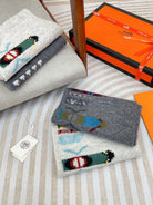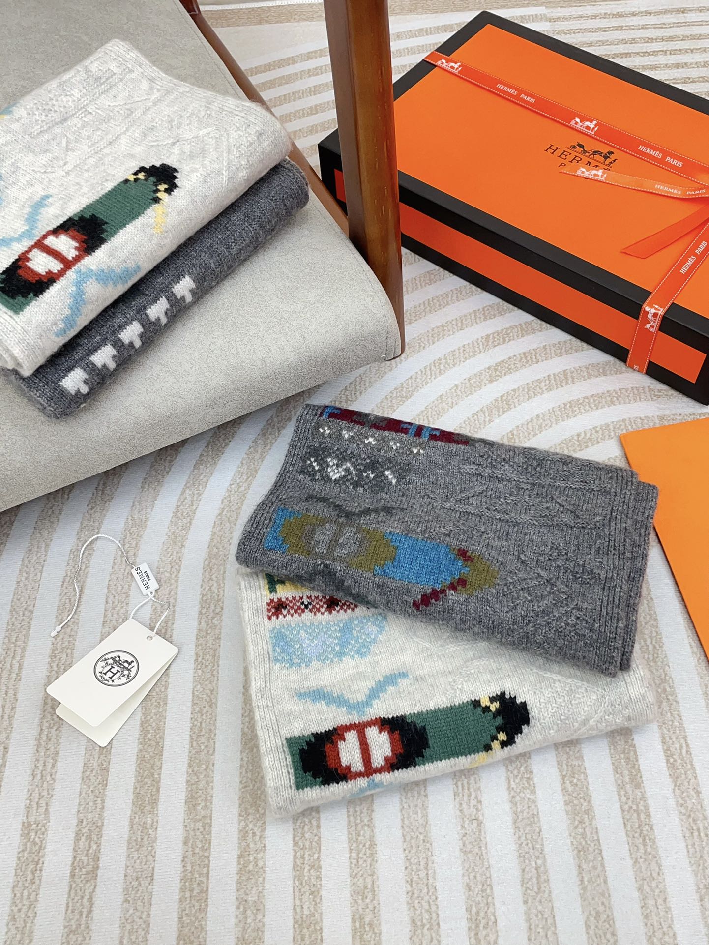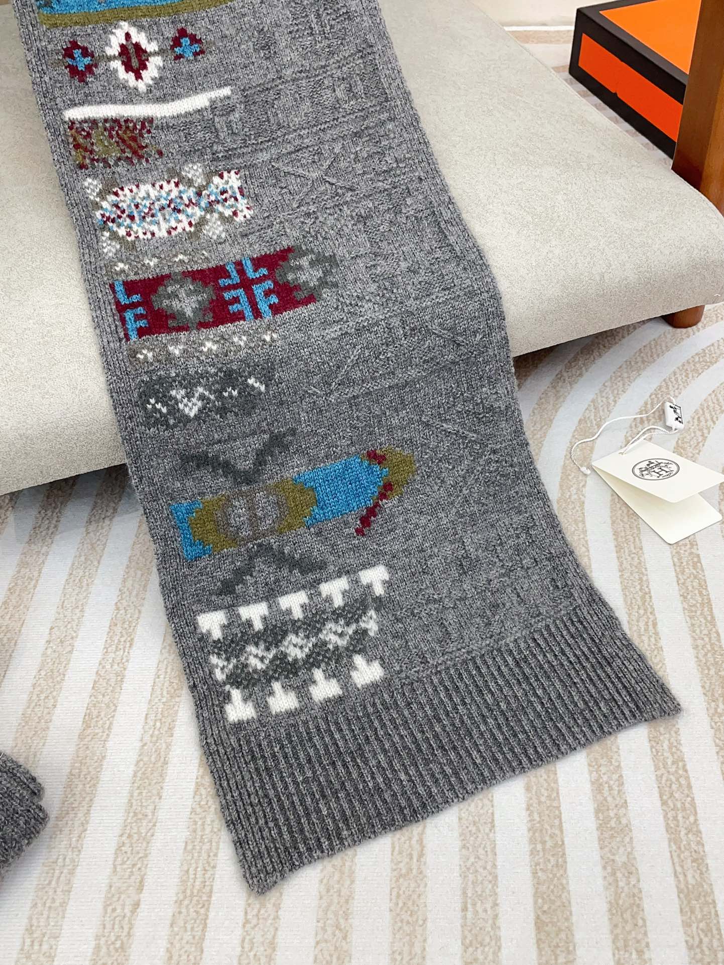Scarf 120 CM In Grey Black Hand Woven Cashmere 401167
