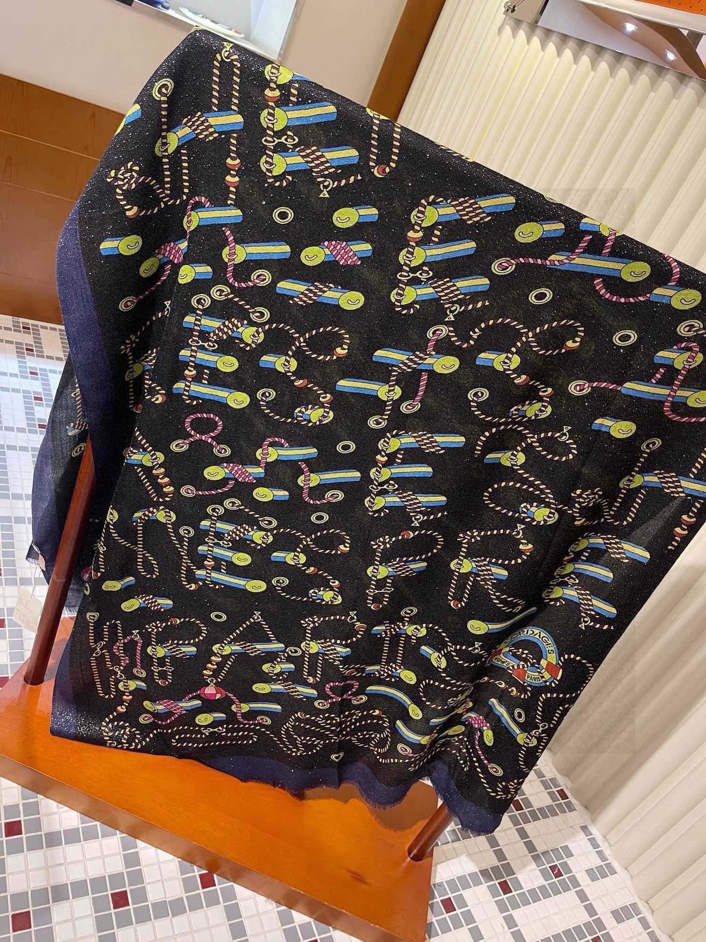 Scarf 200 CM In Black Colorful Cashmere Silk 264152