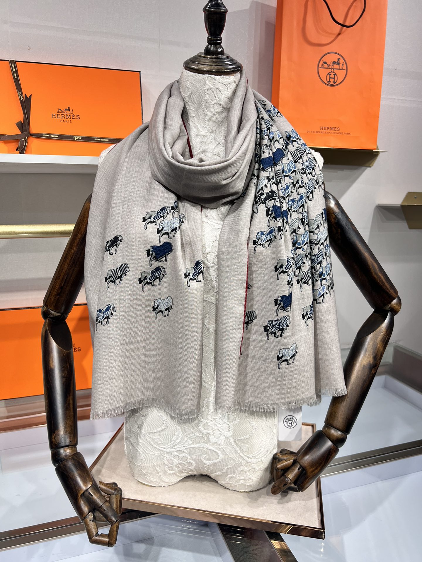 SCARF 185 CM IN DOVE GREY MIX COLORFUL CASHMERE 388010