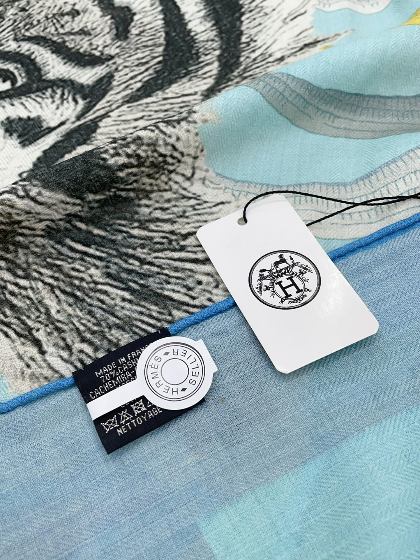 Tigre Royal Double Face Scarf 140 CM In Light Turquoise Colorful Cashmere And Silk 254647