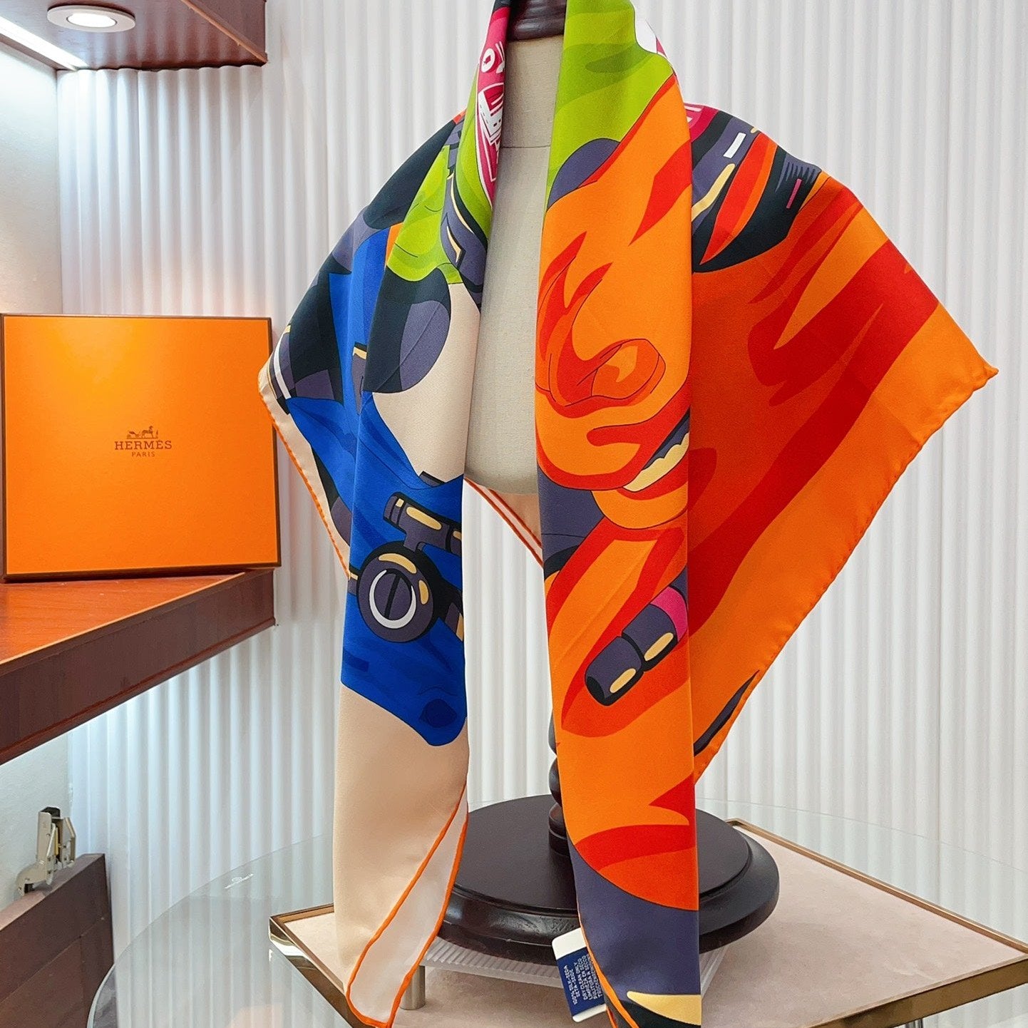 Le Reve De Julia Scarf 90 CM In Orange Colorful Silk Twill 198577