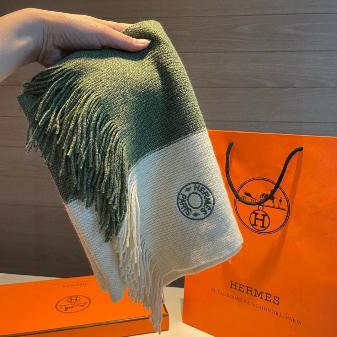 HIGH-END SCARF 180 IN MOSS GREEN MIX BEIGE CASHMERE