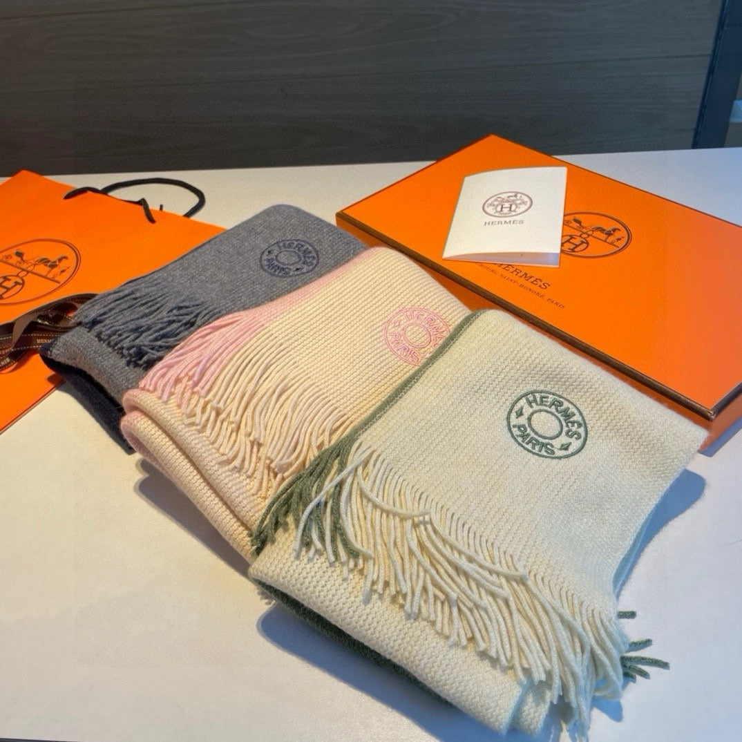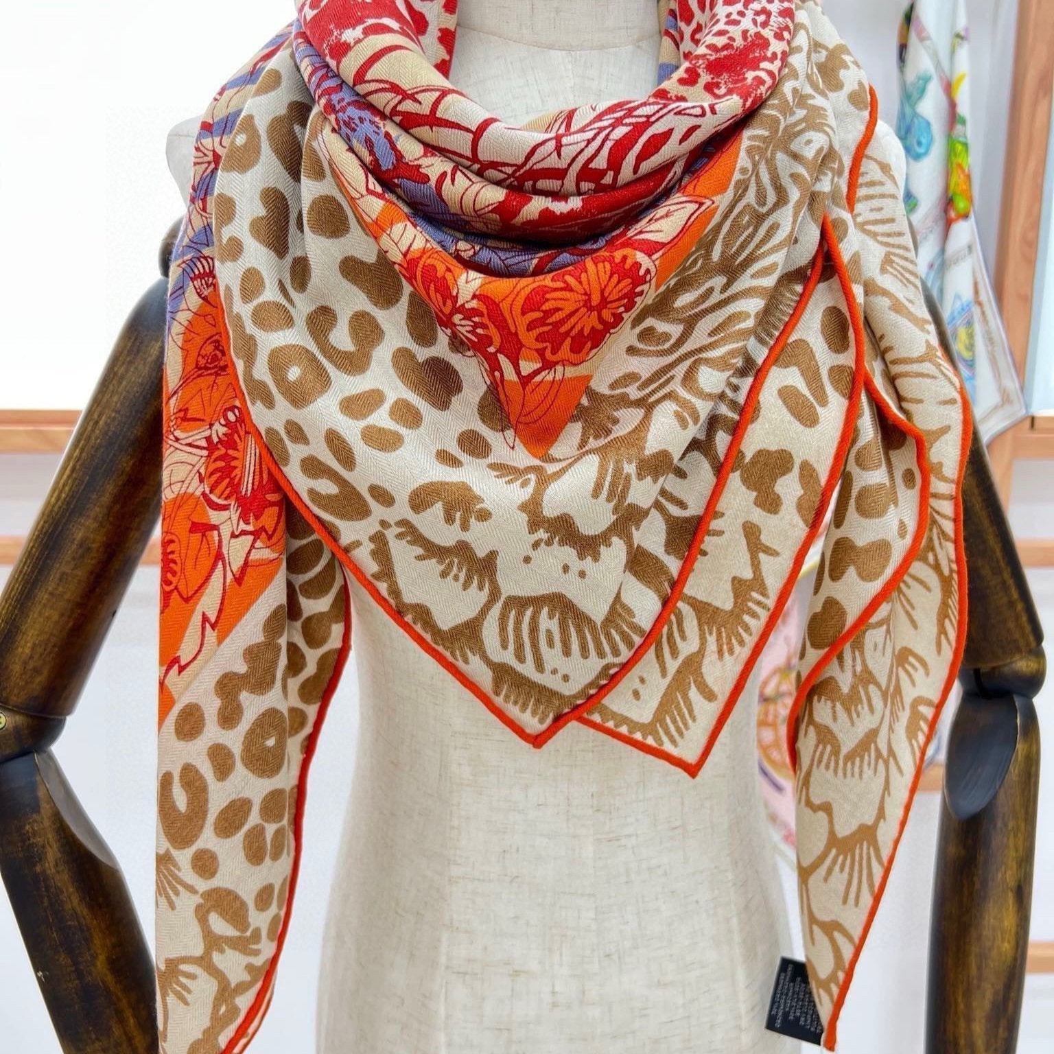 HM Lettres Equestre Scarf 140 CM In Orange Green Colorful Cashmere And Silk 359398