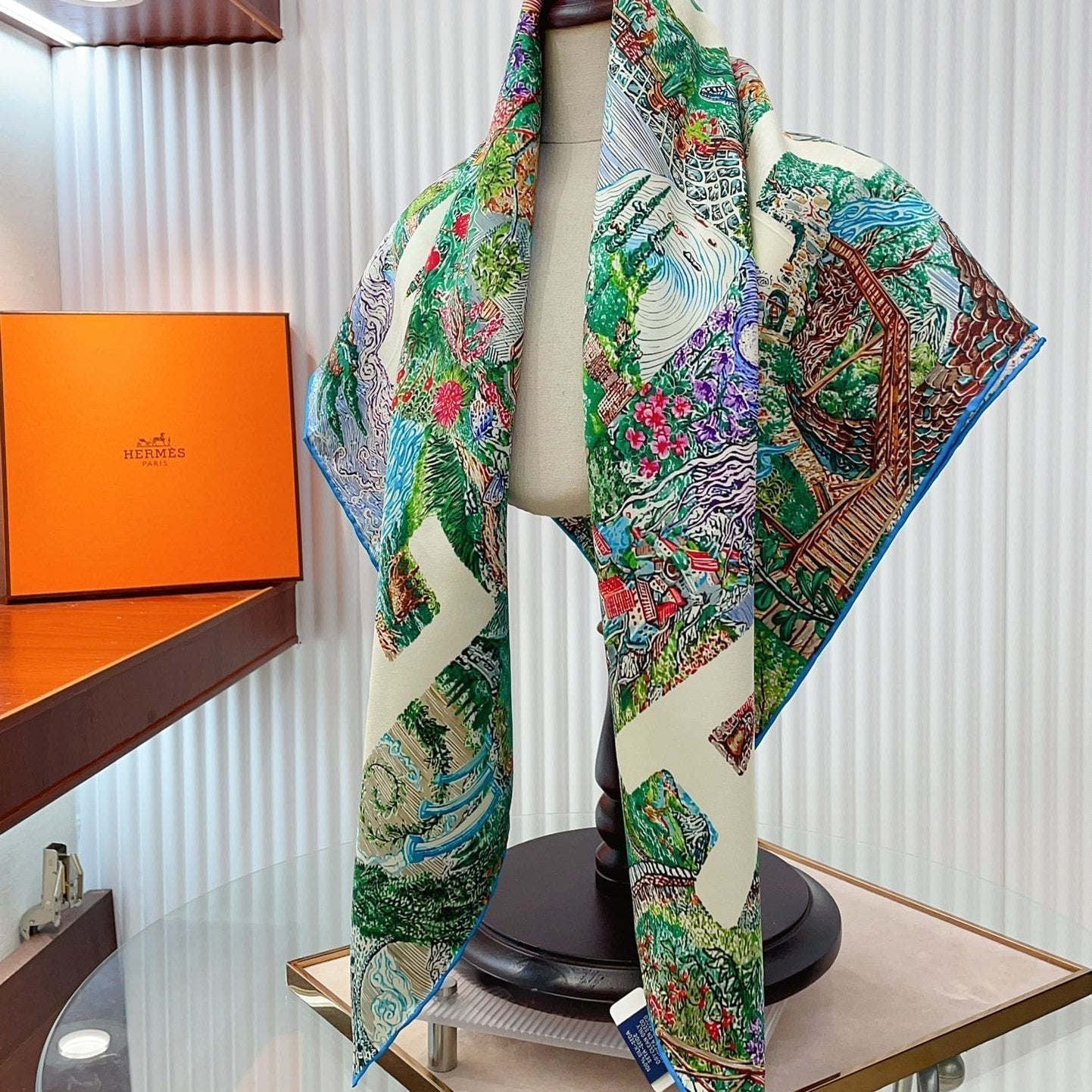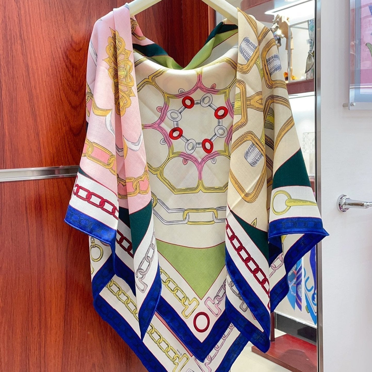 Fantaisie d'Etriers Scarf 140 CM Green Mix Blue Colorful Silk