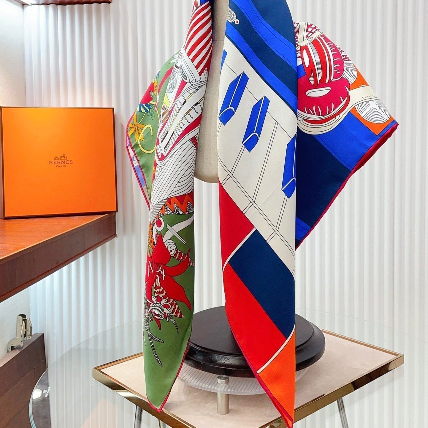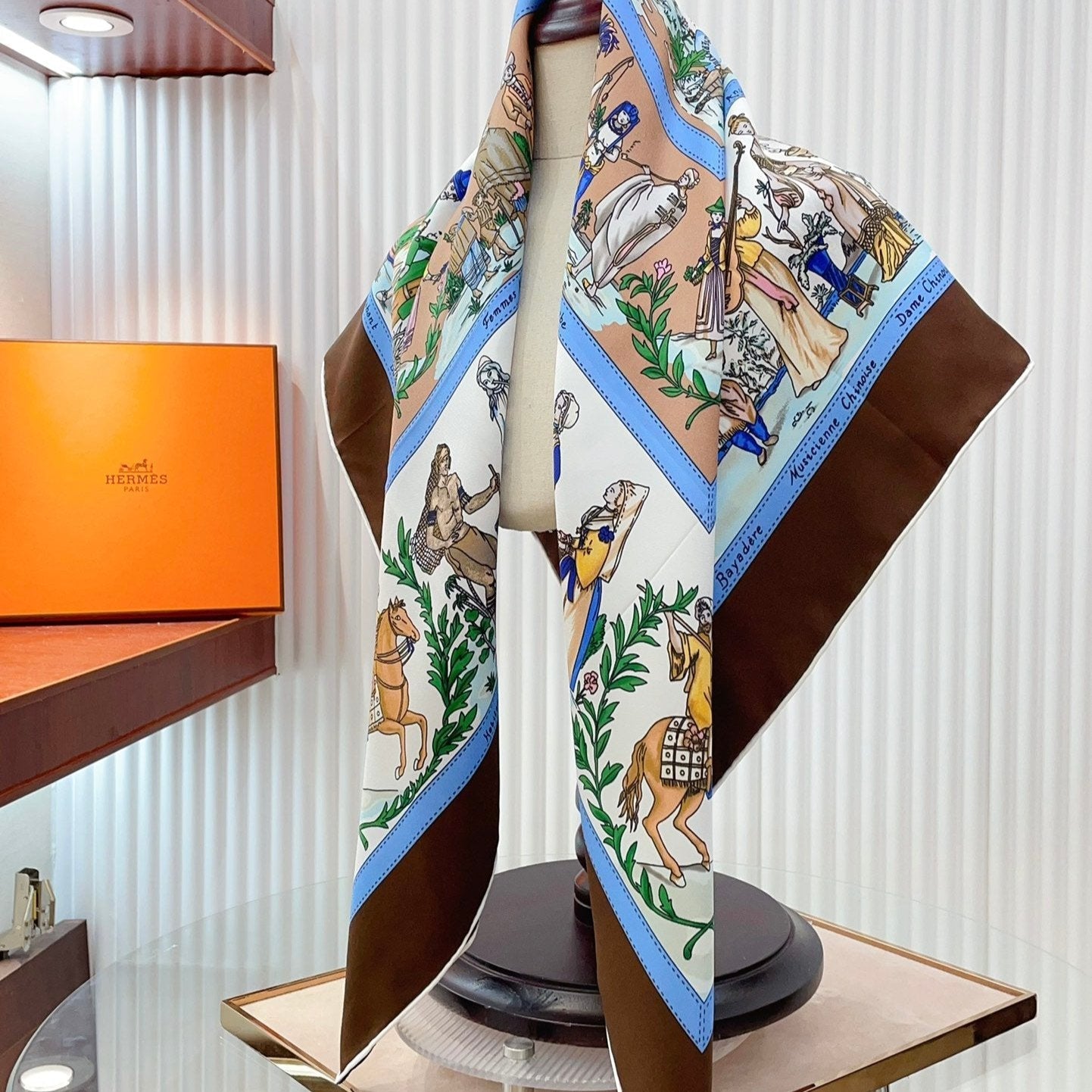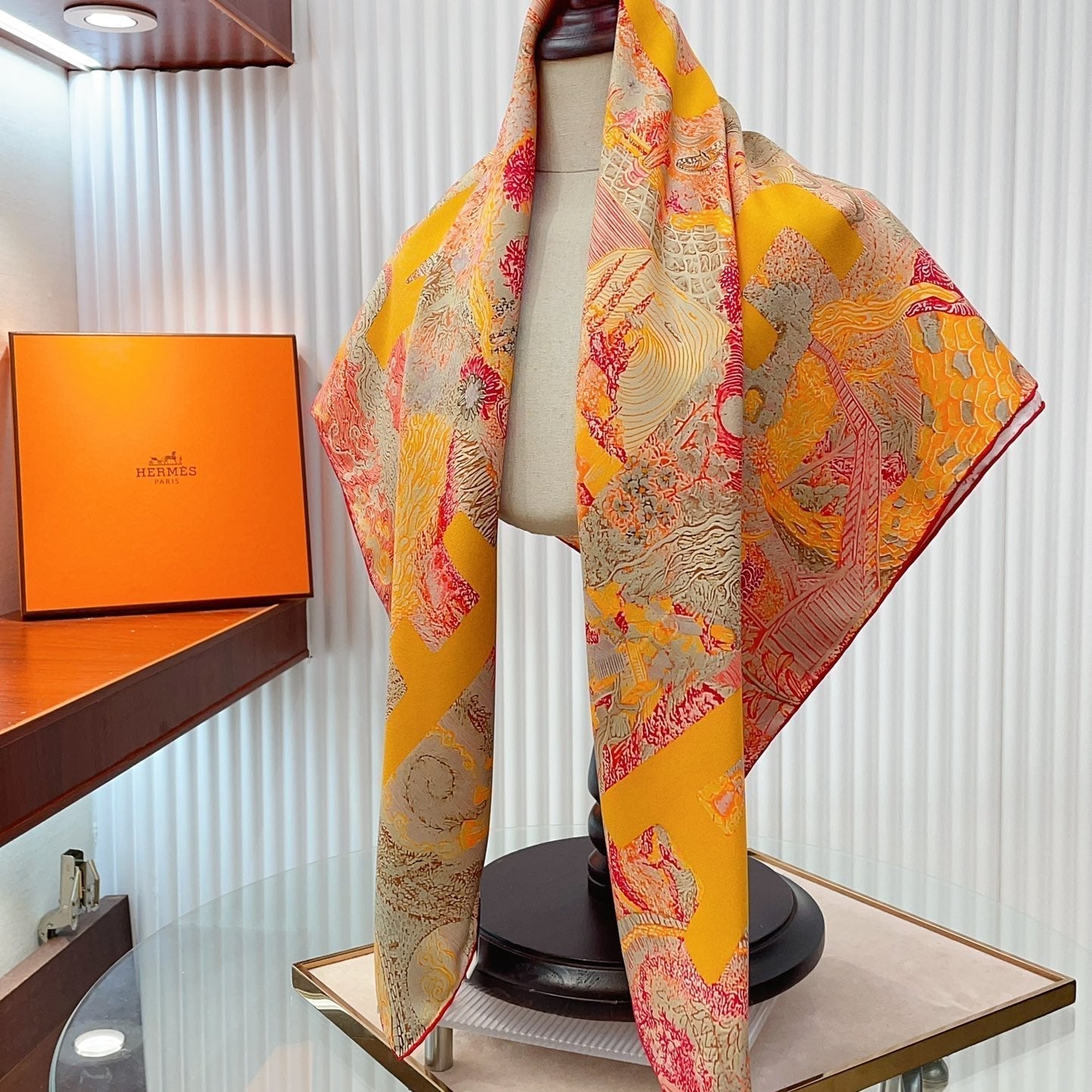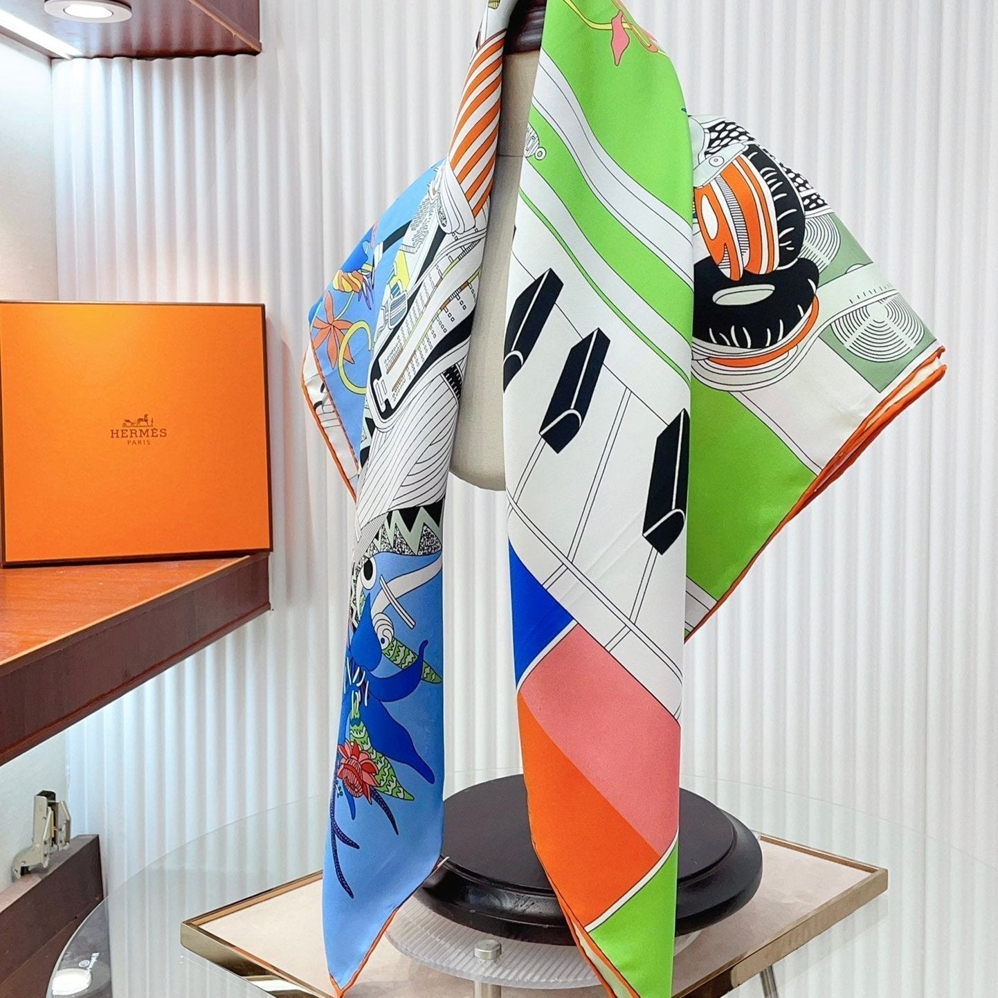 Complication Equestre Scarf 90 CM In White Yellow Coloful Silk Twill 345898