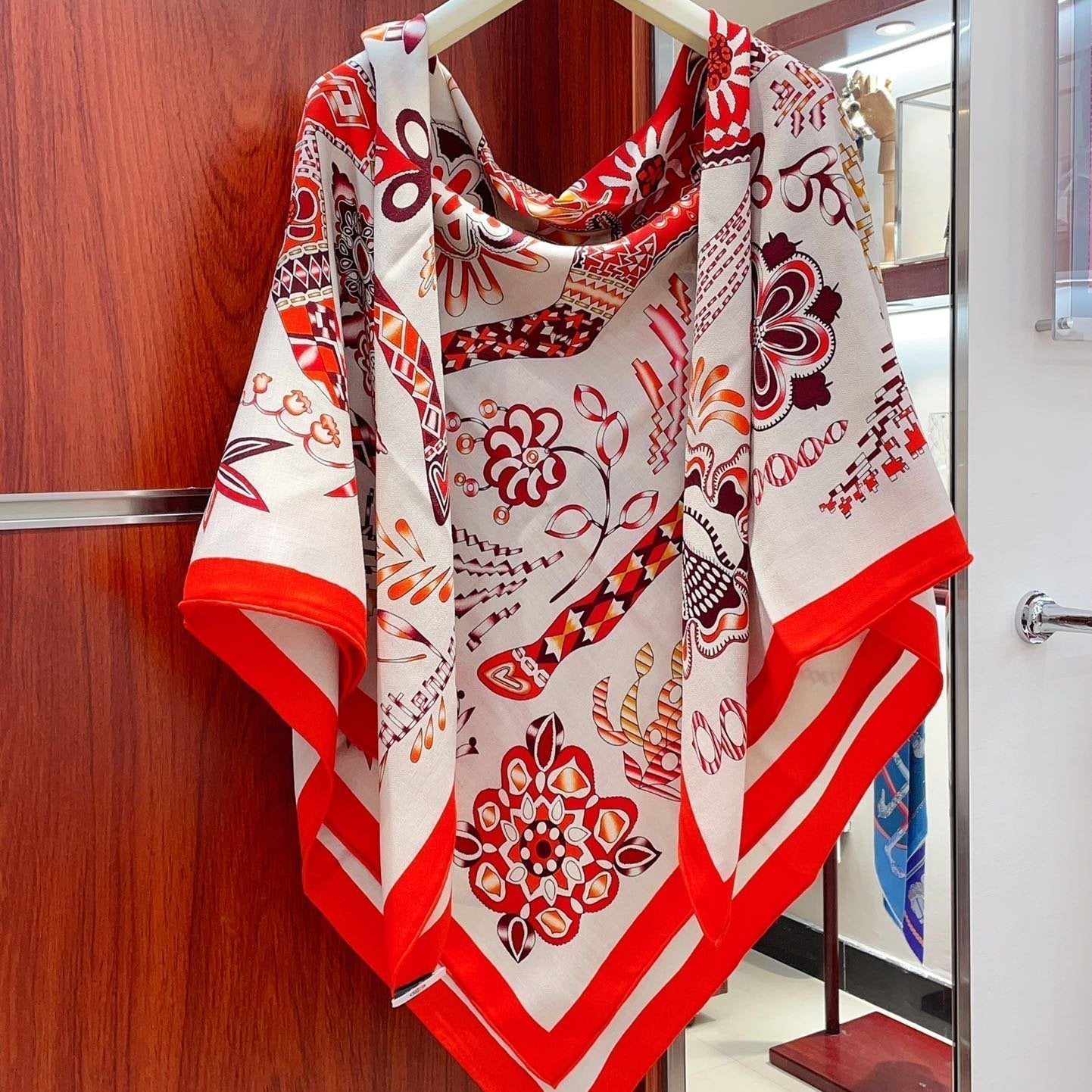Fantaisie d'Etriers Scarf 140 CM Red Colorful Silk