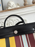 HERBAG ZIP 31 LAQUERED BAG IN BROWN MIX YELLOW H PLUME CANVAS