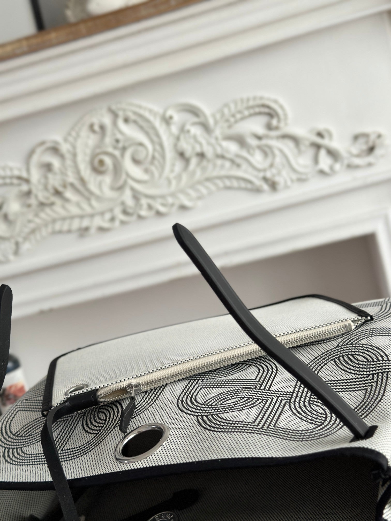 HERBAG ZIP 31 LAQUERED BAG IN OFF-WHITE MIX BLACK H PLUME CANVAS