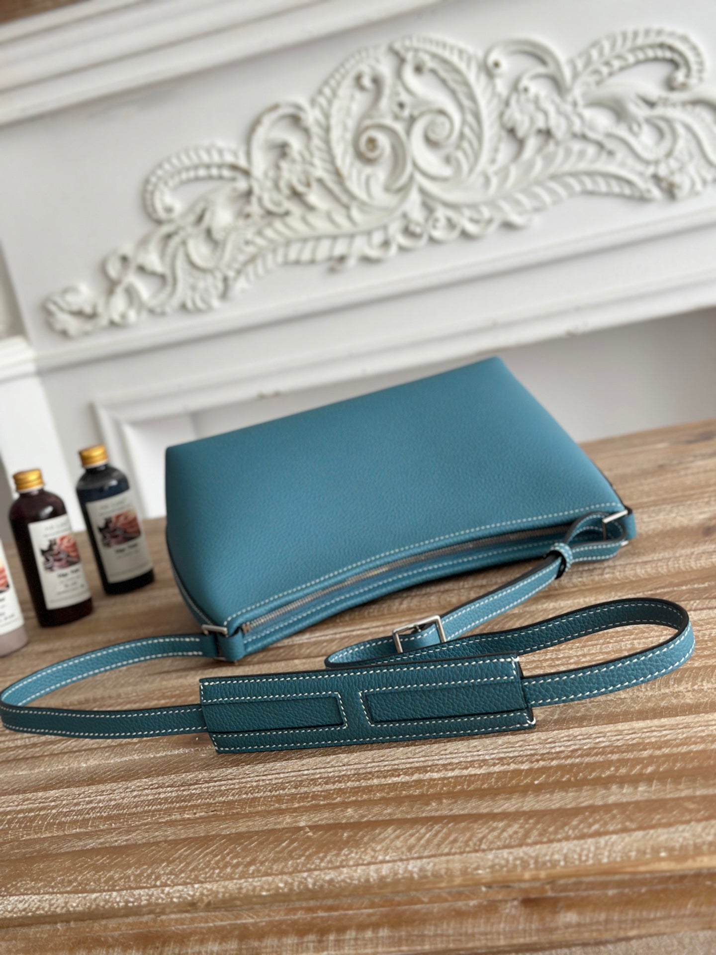 HM Berlingot Shoulder Bag Teal Blue Epsom Leather 270323