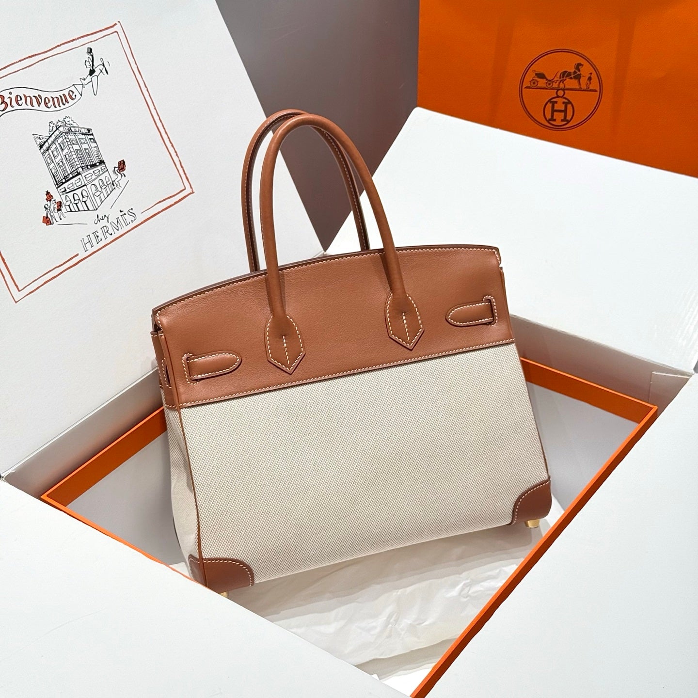 HM Birkin 30cm Golden Brown Swift Cowhide With Beige Canvas Fabric Ghw 249976