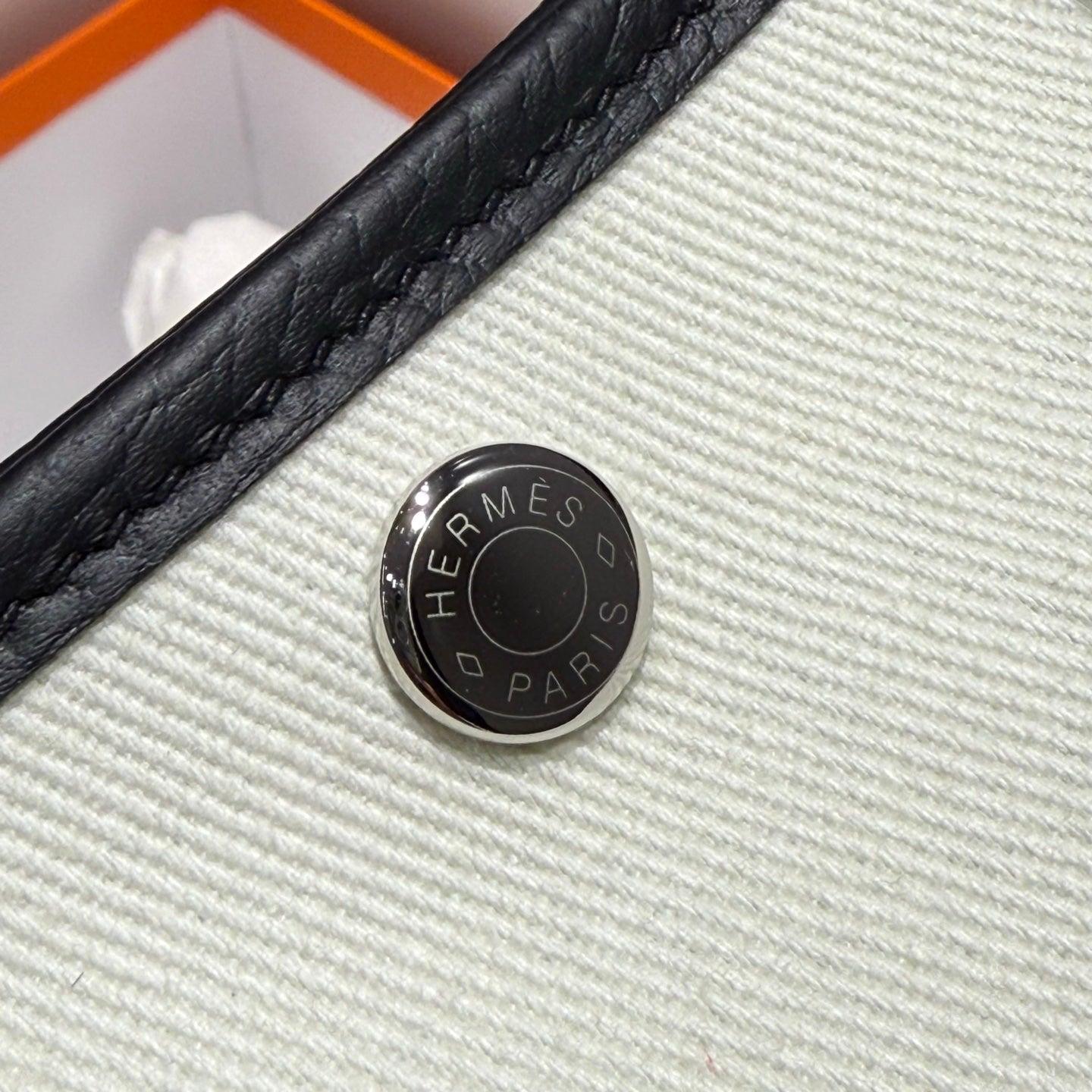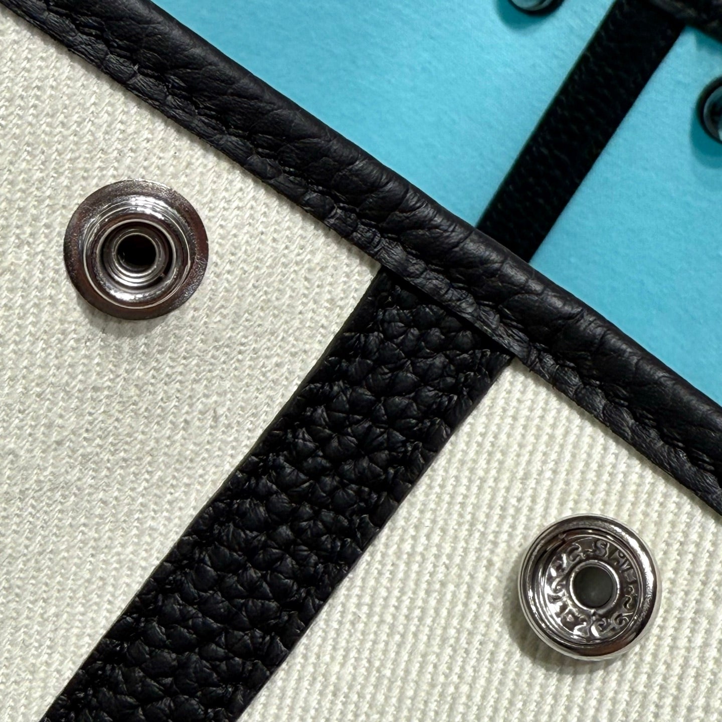 HM Garden Party 30cm Bag Black Togo White Canvas