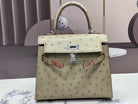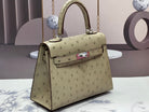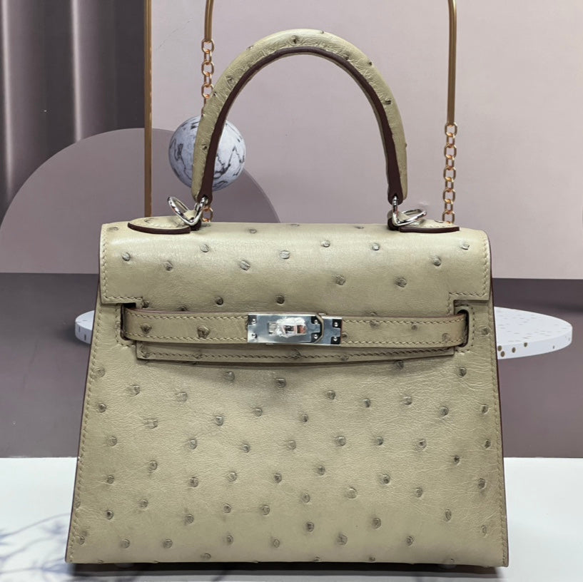 KELLY BAG 20 IN KHAKI TAN OSTRICH LEATHER WITH SILVER HARDWARE (MADE - TO - ODER)