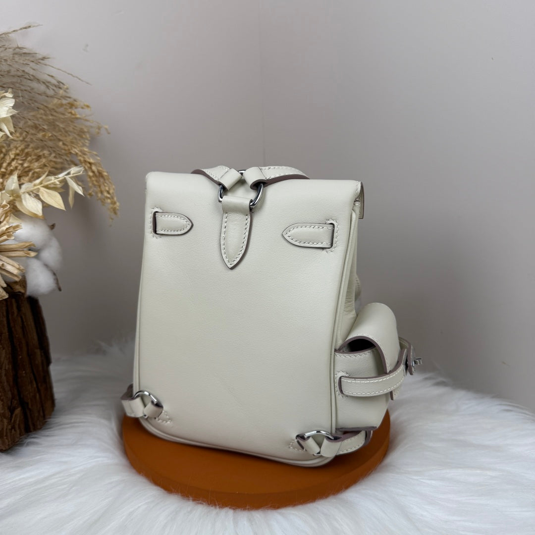 HM Kelly Jump Backpack White Cowhide Sliver Hardware 270038