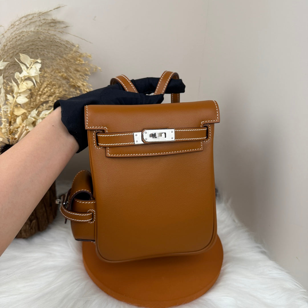 HM Kelly Jump Backpack Brown Cowhide Gold Hardware 270048