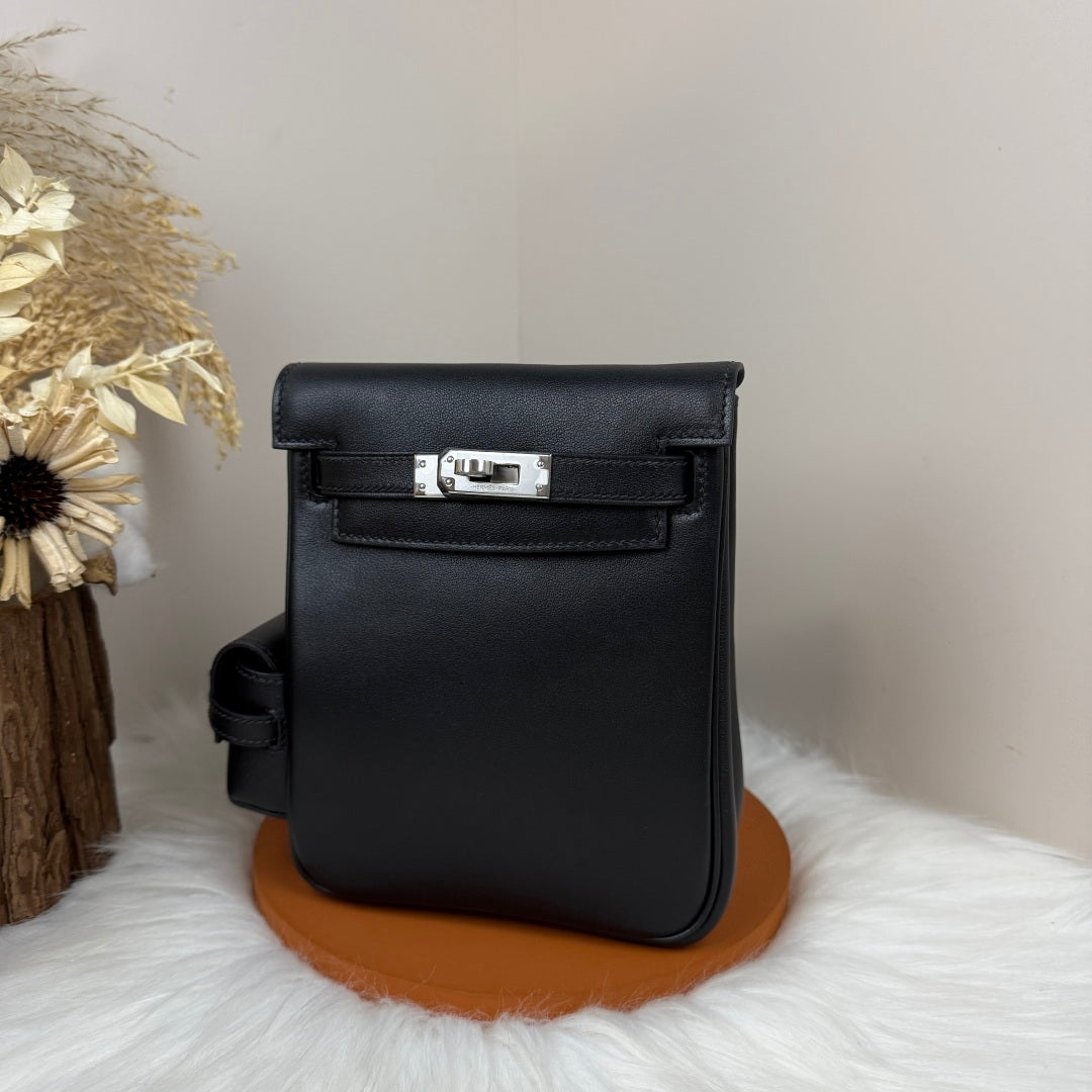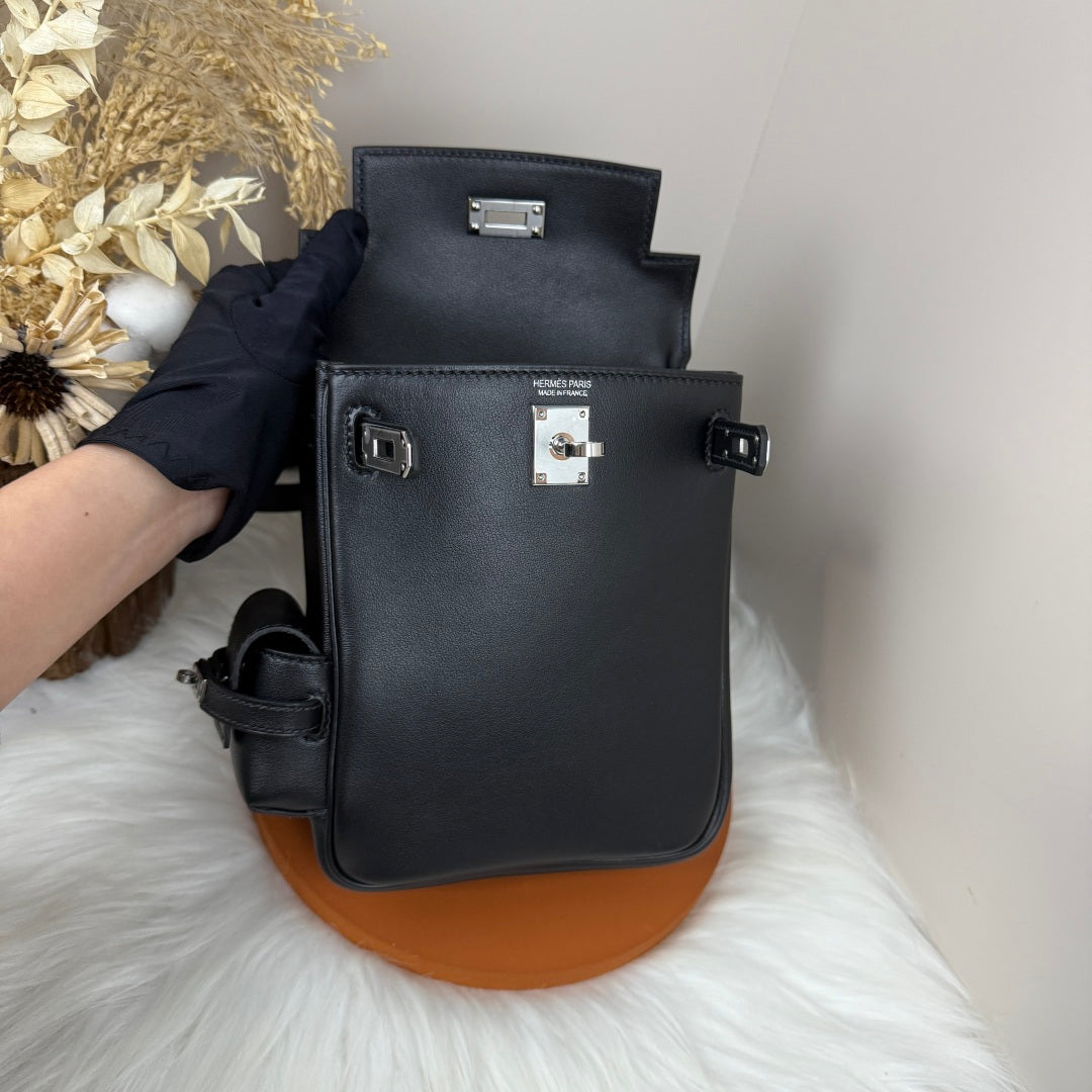 HM Kelly Jump Backpack Black Cowhide Sliver Hardware 270046
