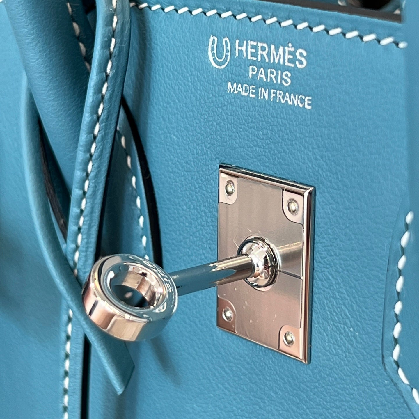 HM Birkin 𝟐𝟓 𝐒𝐰𝐢𝐟𝐭 Blue & Pearl Gray Cowhide Grayiver Hardware (25day to produce) 270223